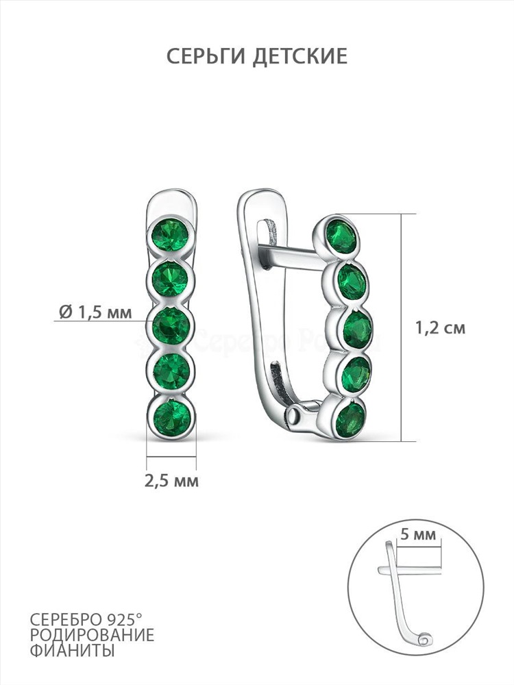 Серьги детские из серебра с фианитами родированные 925 пробы 402051-046р
