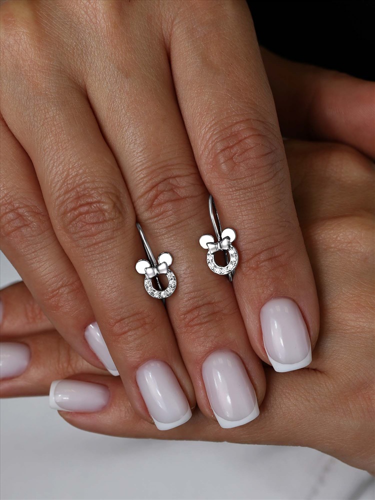 Серьги детские из серебра с фианитами родированные 925 пробы 5026р200