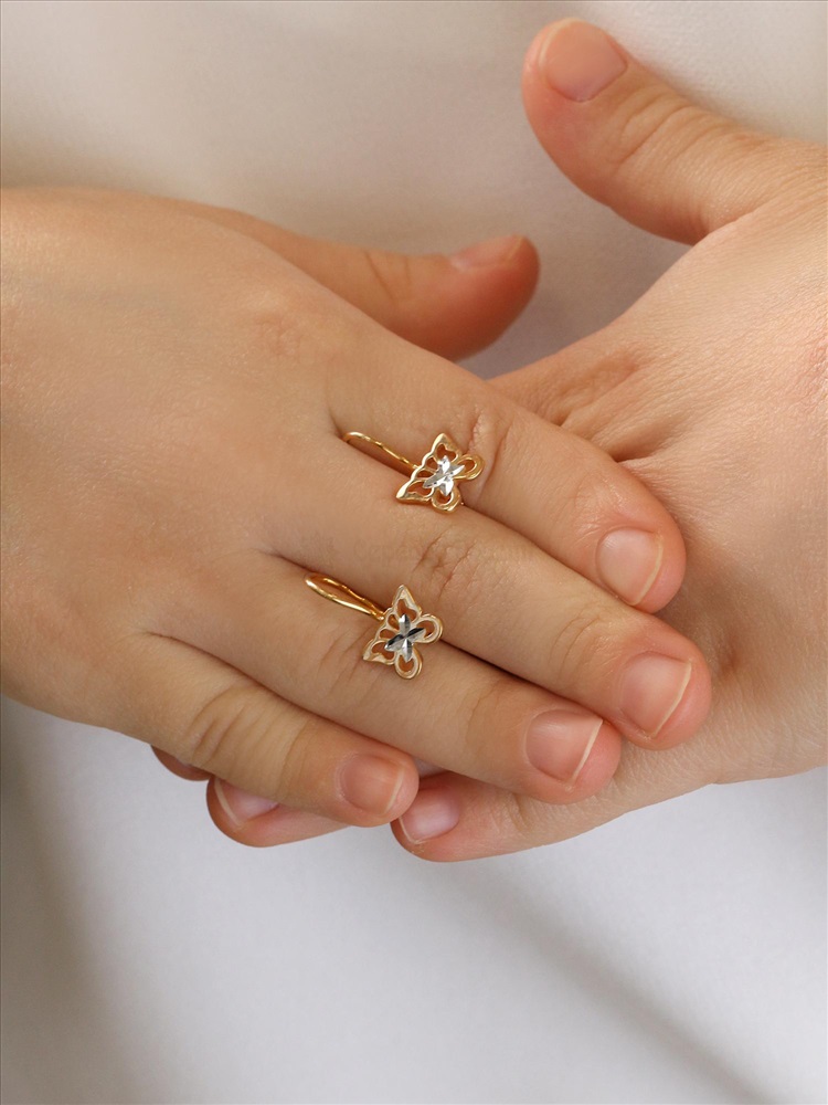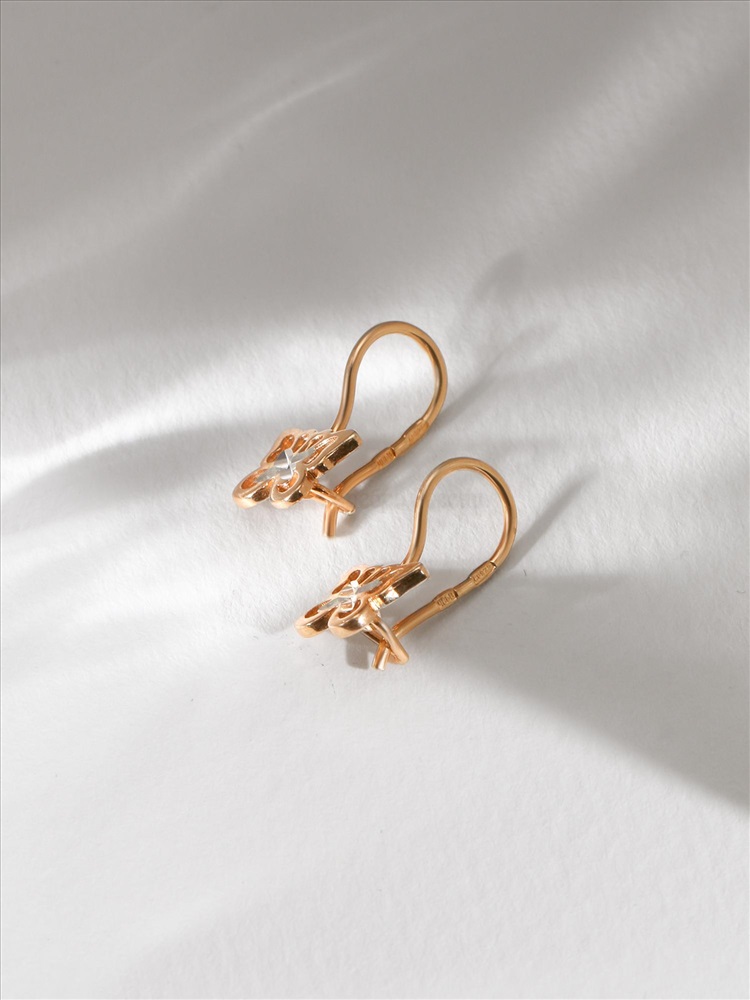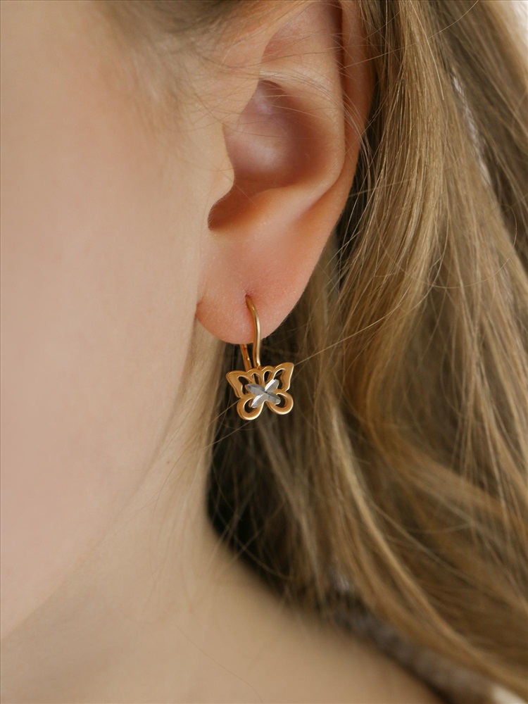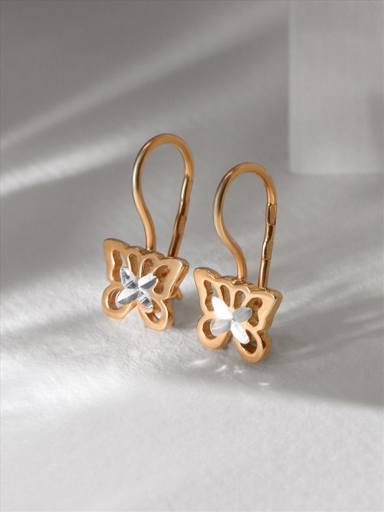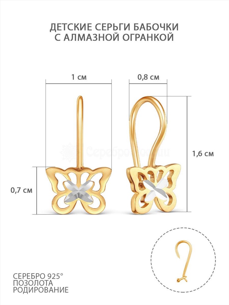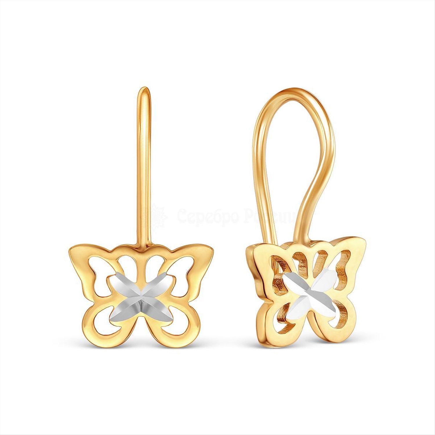 Серьги детские из золочёного серебра на петле с алмазной огранкой - Бабочки 925 пробы ДС-037з