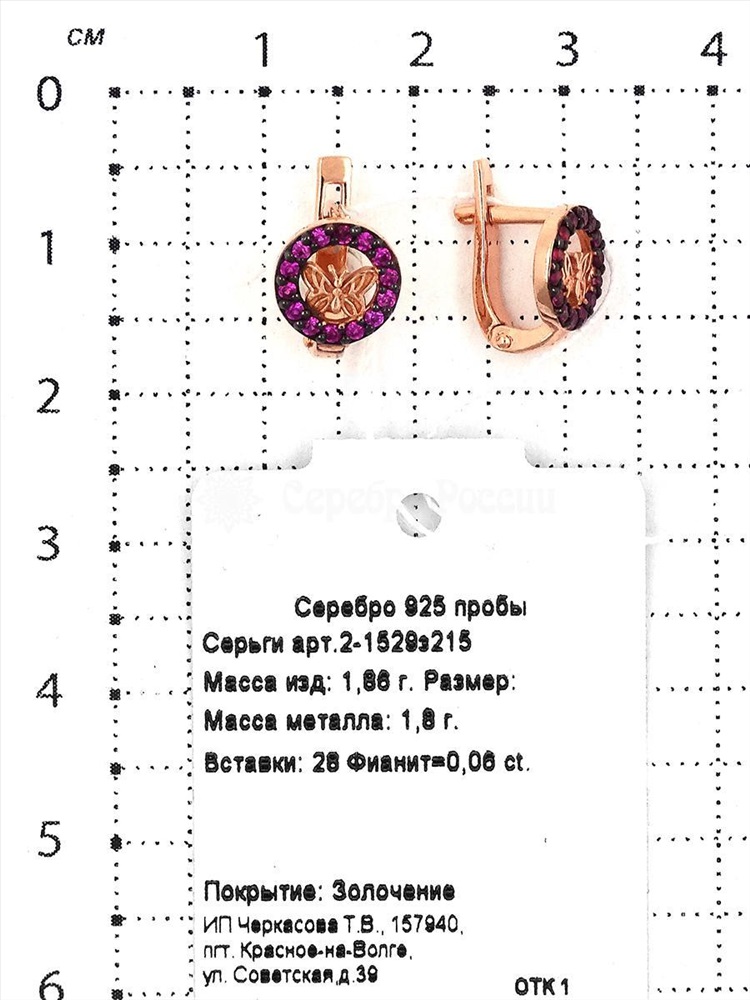 Серьги детские из золочёного серебра с фианитами 925 пробы 2-1529з215