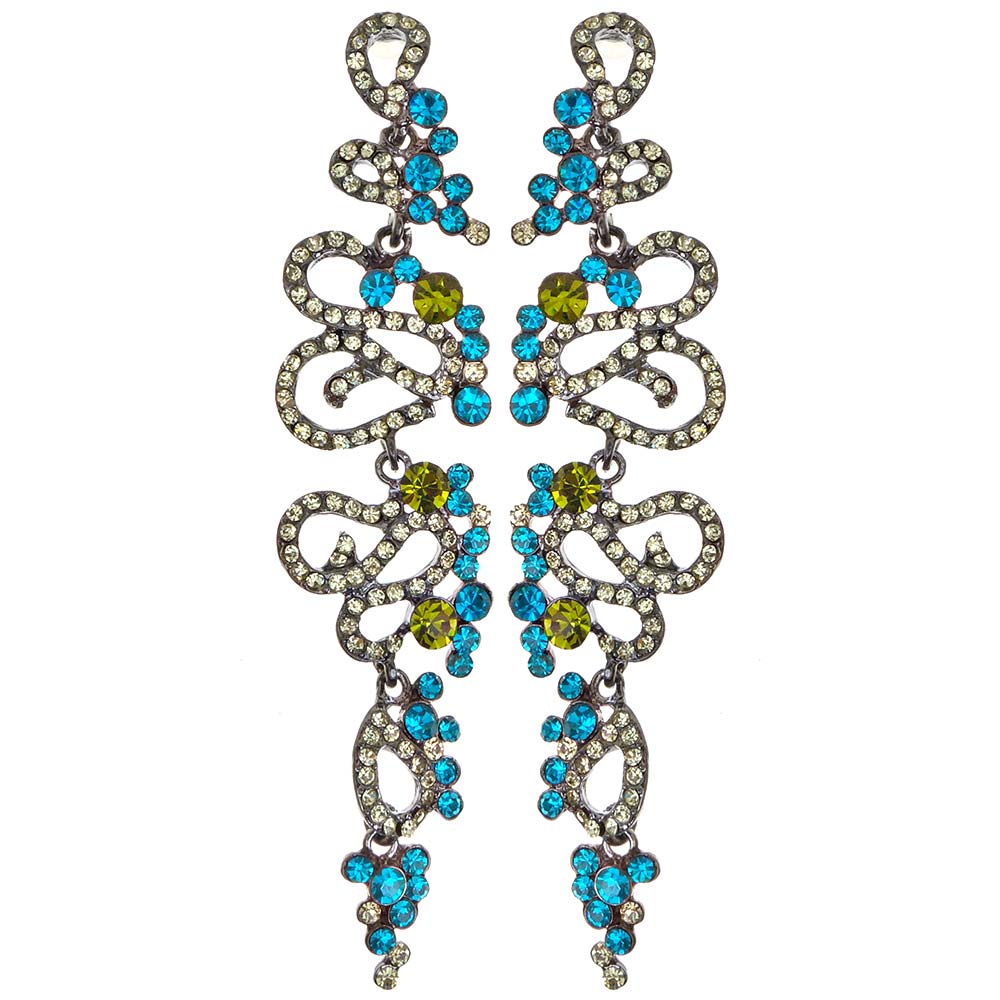 Замок: Гвоздик Тема: Вечерние украшения, Акция Цвет: Белый, Голубой Металл: Чернённое серебро Материал: Бижутерный гипоаллергенный сплав Вставка: Стразы Производство: Корея Количество: пара Серьги длинные на гвоздиках бело-голубые с гальваническим покрытием под чернённое серебро со стразами