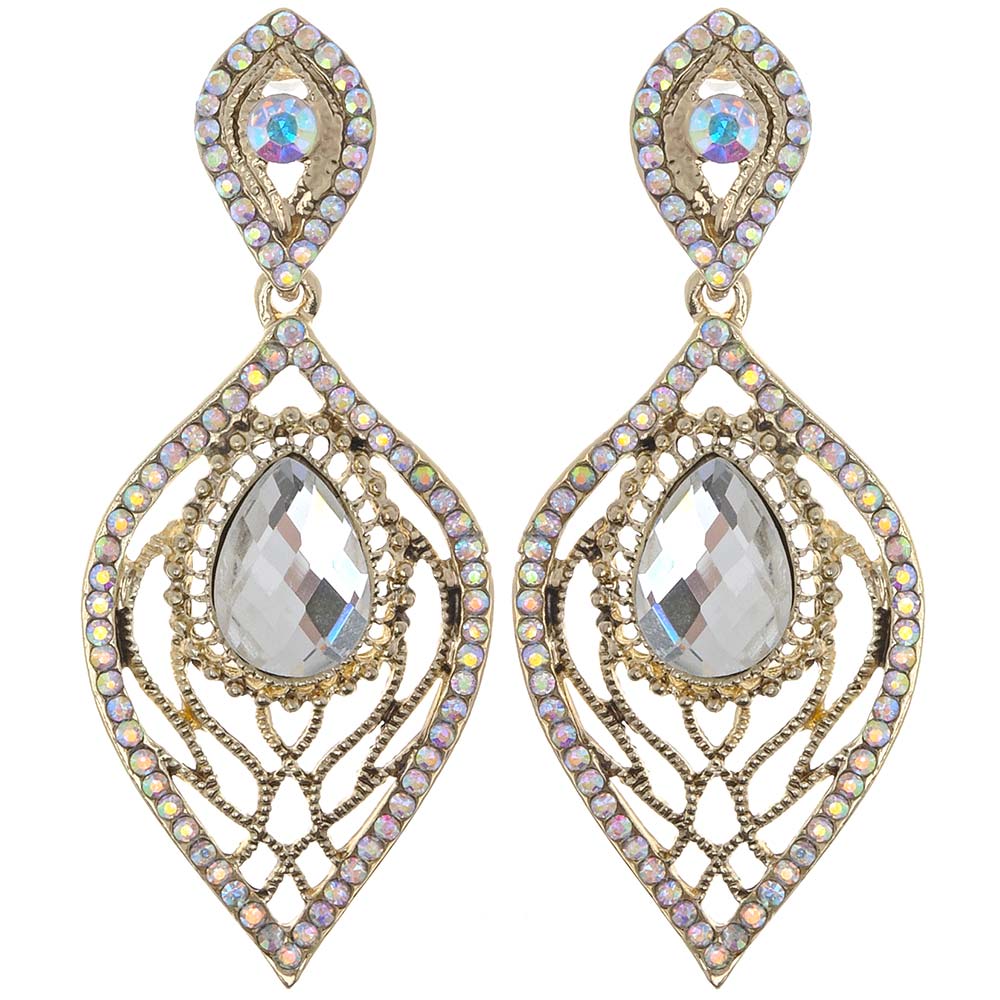 Замок: Гвоздик Пол: Для женщин Тема: Вечерние украшения, Акция Цвет: Голубой, Золотистый, Прозрачный Материал: Бижутерный гипоаллергенный сплав Вставка: Стразы Производство: Китай Количество: пара Серьги длинные на гвоздиках золотисто-голубые женские со стразами