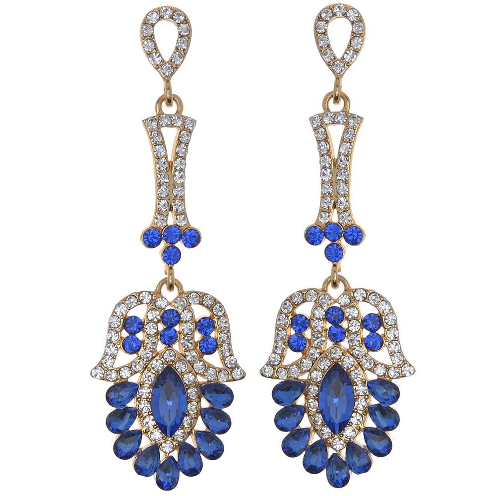 Замок: Гвоздик Пол: Для женщин Тема: Вечерние украшения, Акция Цвет: Белый, Синий Материал: Бижутерный гипоаллергенный сплав Вставка: Стразы Производство: Китай Количество: пара Серьги длинные на гвоздиках бело-синие женские со стразами
