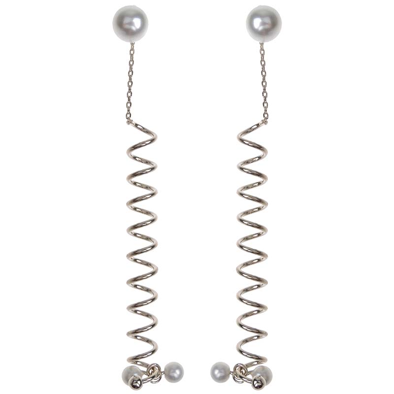 Серьги длинные на гвоздиках женские в повседневном стиле с гальваническим покрытием под серебро с акриловым жемчугом