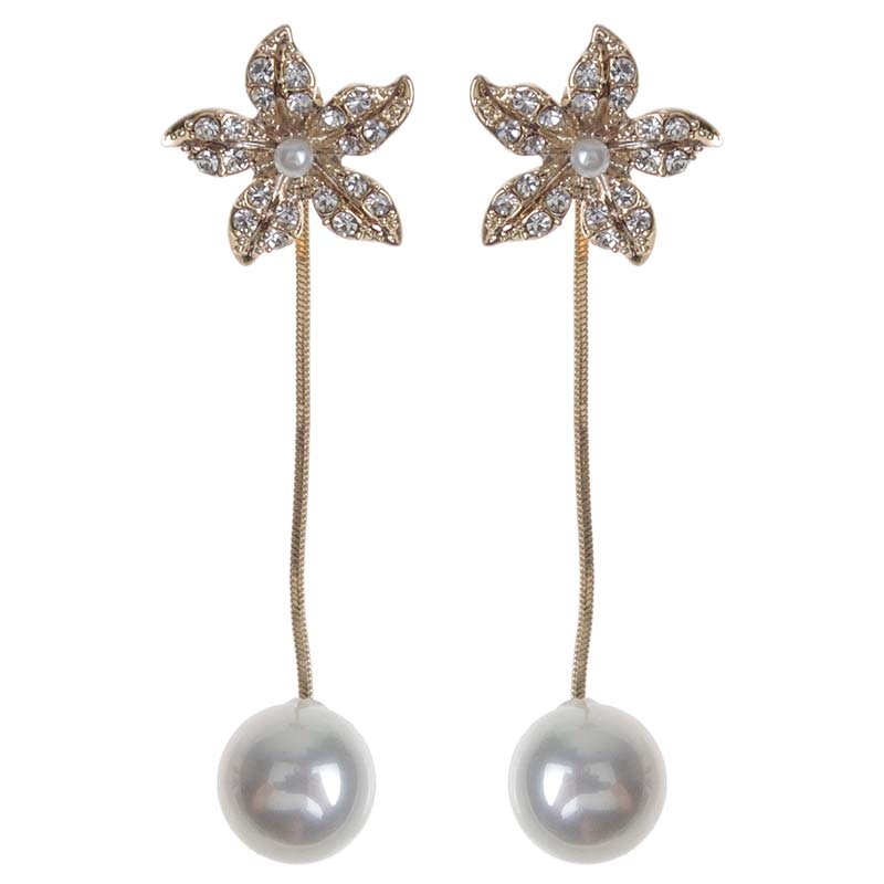 Серьги длинные на гвоздиках женские в повседневном стиле с гальваническим покрытием под золото с акриловым жемчугом