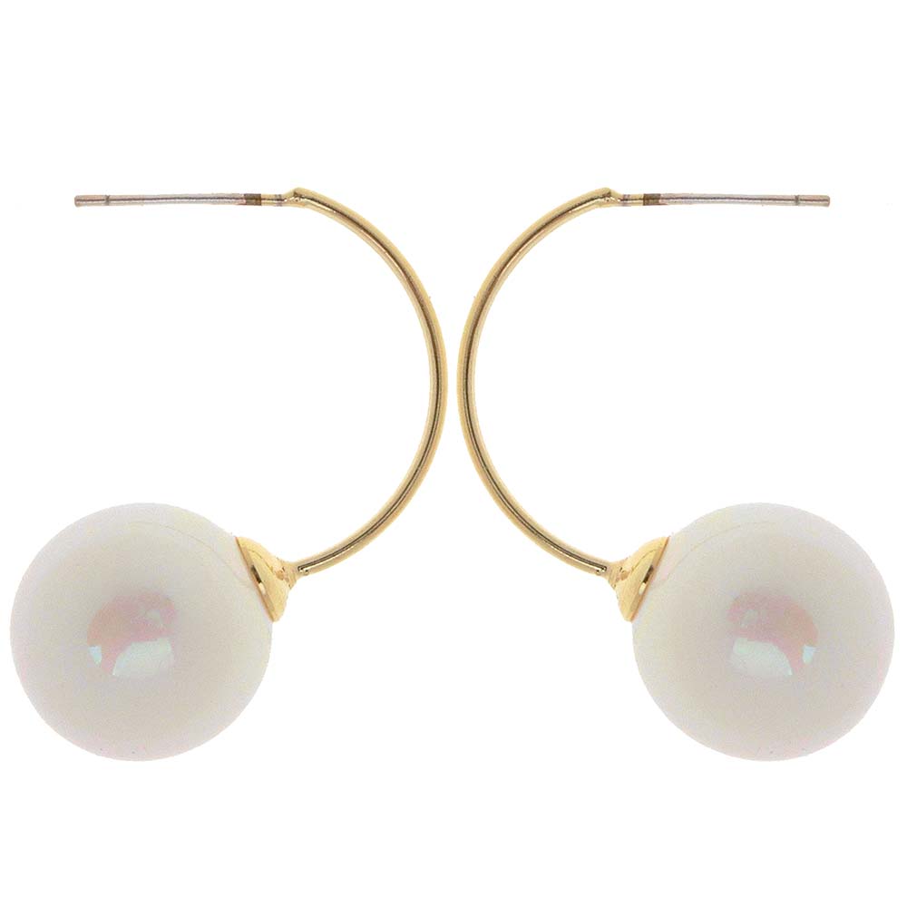 Серьги длинные на гвоздиках бело-золотистые женские в повседневном стиле с золотым покрытием 18K 1 мкр с искусственным жемчугом Майорка (покрытие натуральный перла