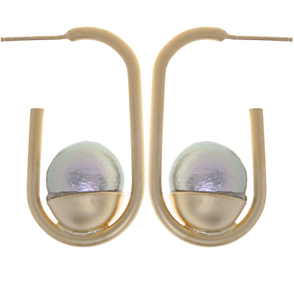 Серьги длинные на гвоздиках зелёно-золотистые женские в повседневном стиле с акриловым жемчугом