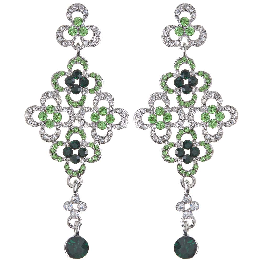 Замок: Гвоздик Пол: Для женщин Стиль: Вечерний Тема: Вечерние украшения, Акция Цвет: Зелёный Металл: Серебрянный Материал: Бижутерный гипоаллергенный сплав Вставка: Стразы Производство: Китай Количество: пара Серьги длинные на гвоздиках зелёные женские в вечернем стиле с гальваническим покрытием под серебро со стразами