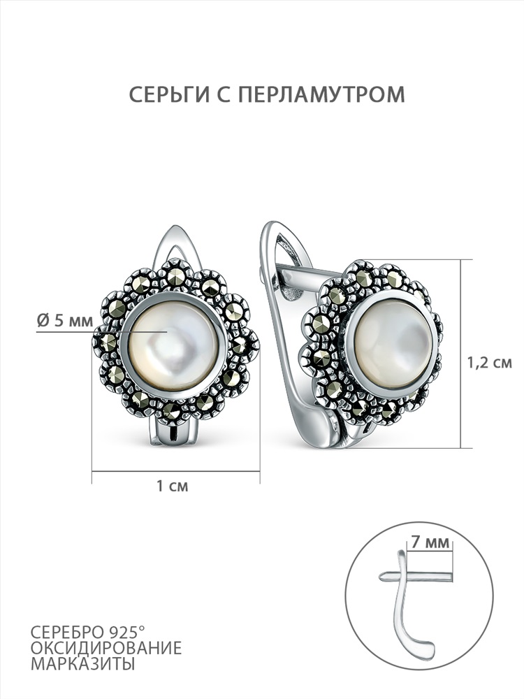 Серьги из чернёного серебра с перламутром и марказитами HE1593-MP-LK