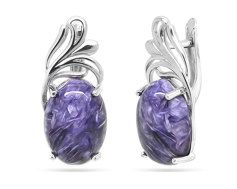 Количество: 2 Серьги, арт.639579 Серебро Серебро 925, 5,24 гр., чароит