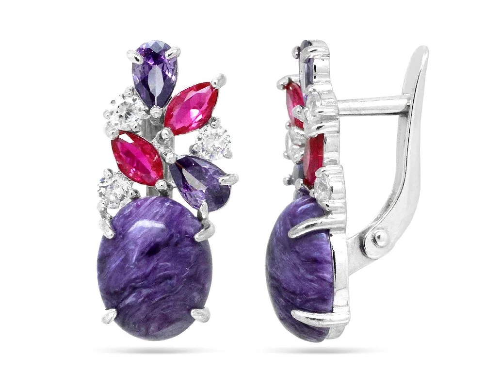 Серьги, арт.645988 Серебро Серебро 925, 4 гр., чароит