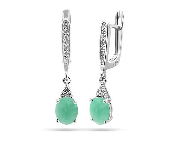 Серьги, арт.628909 Серебро Серебро 925, 3,6 гр., изумруд
