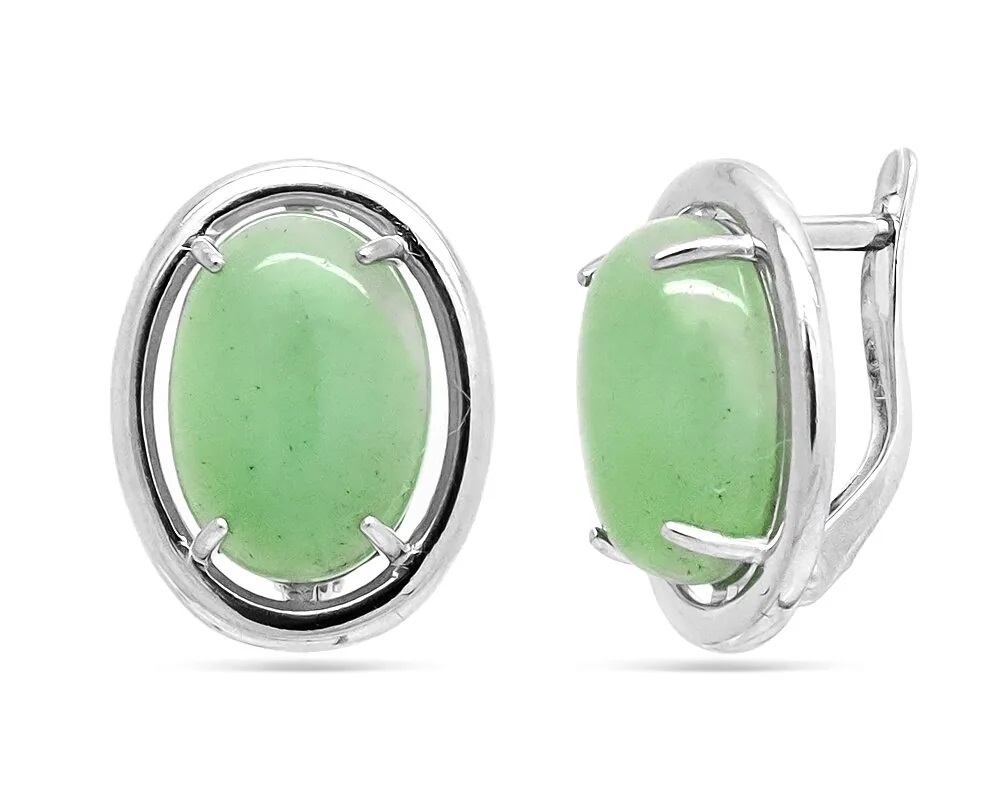 Серьги из серебра нефрит, СПН2054