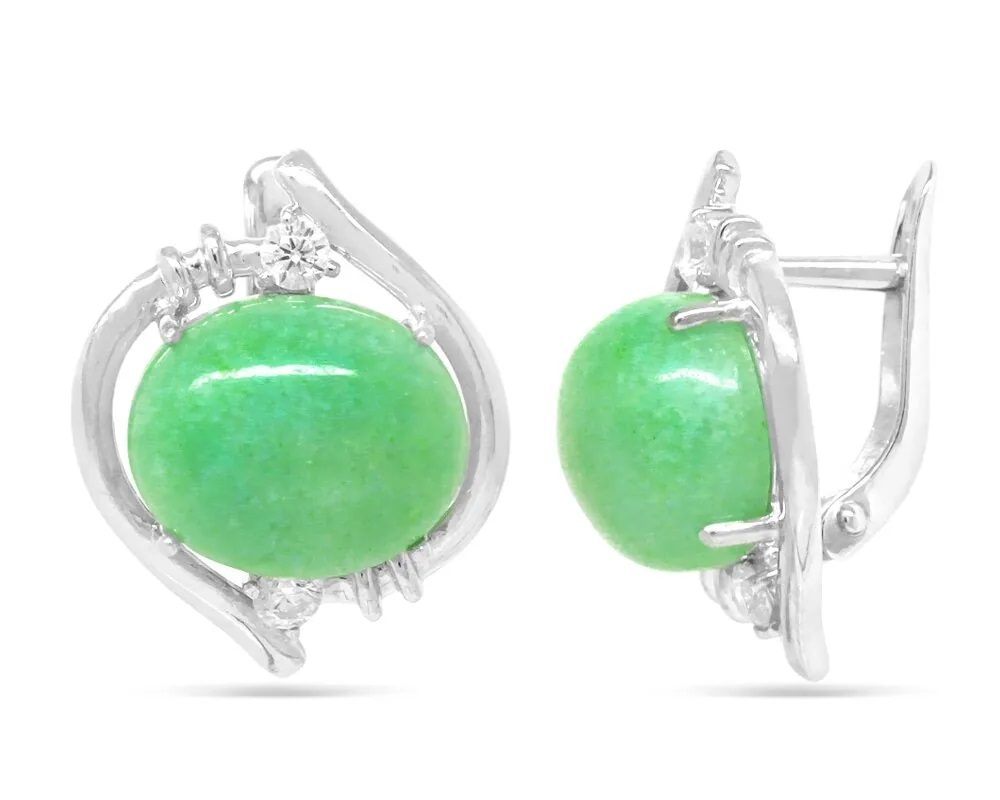 Серьги, арт.647081 Серебро Серебро 925, 5,2 гр., нефрит