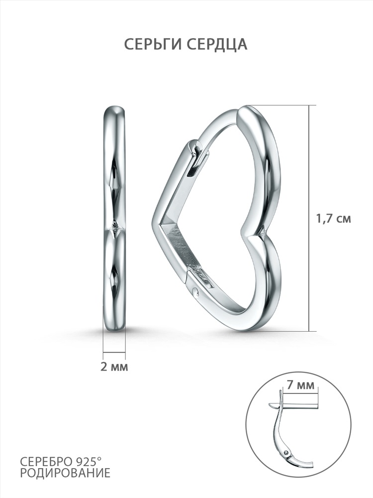 Серьги из серебра родированные - Сердца 3001029268
