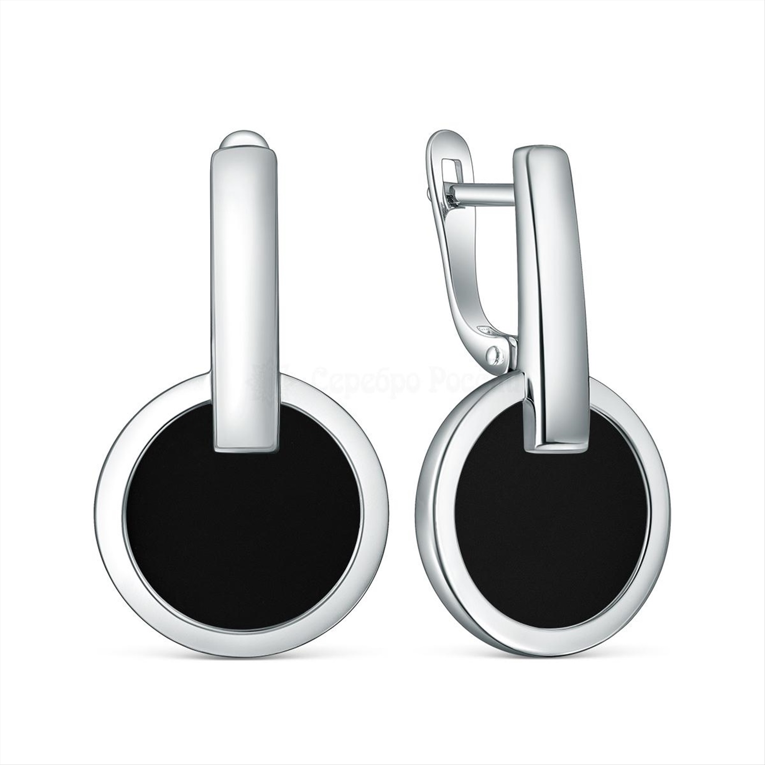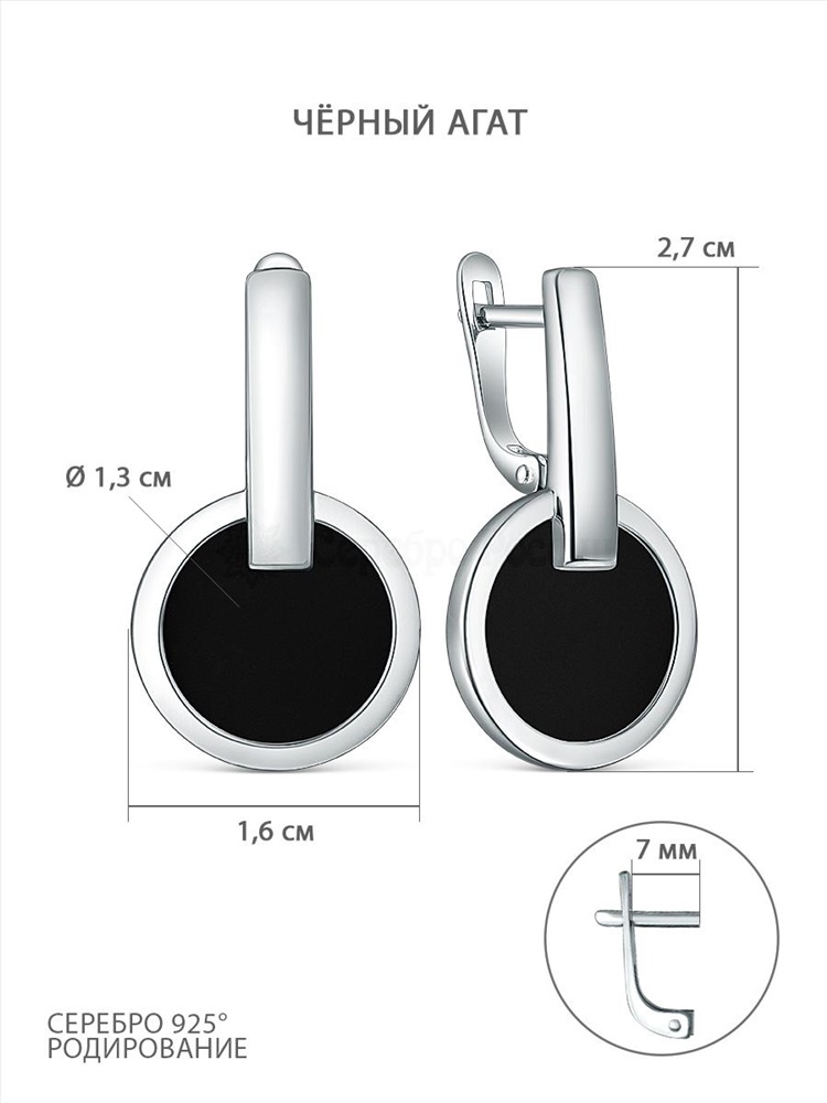 Серьги из серебра с чёрным агатом родированные 925 пробы С-4527-Р-Ча