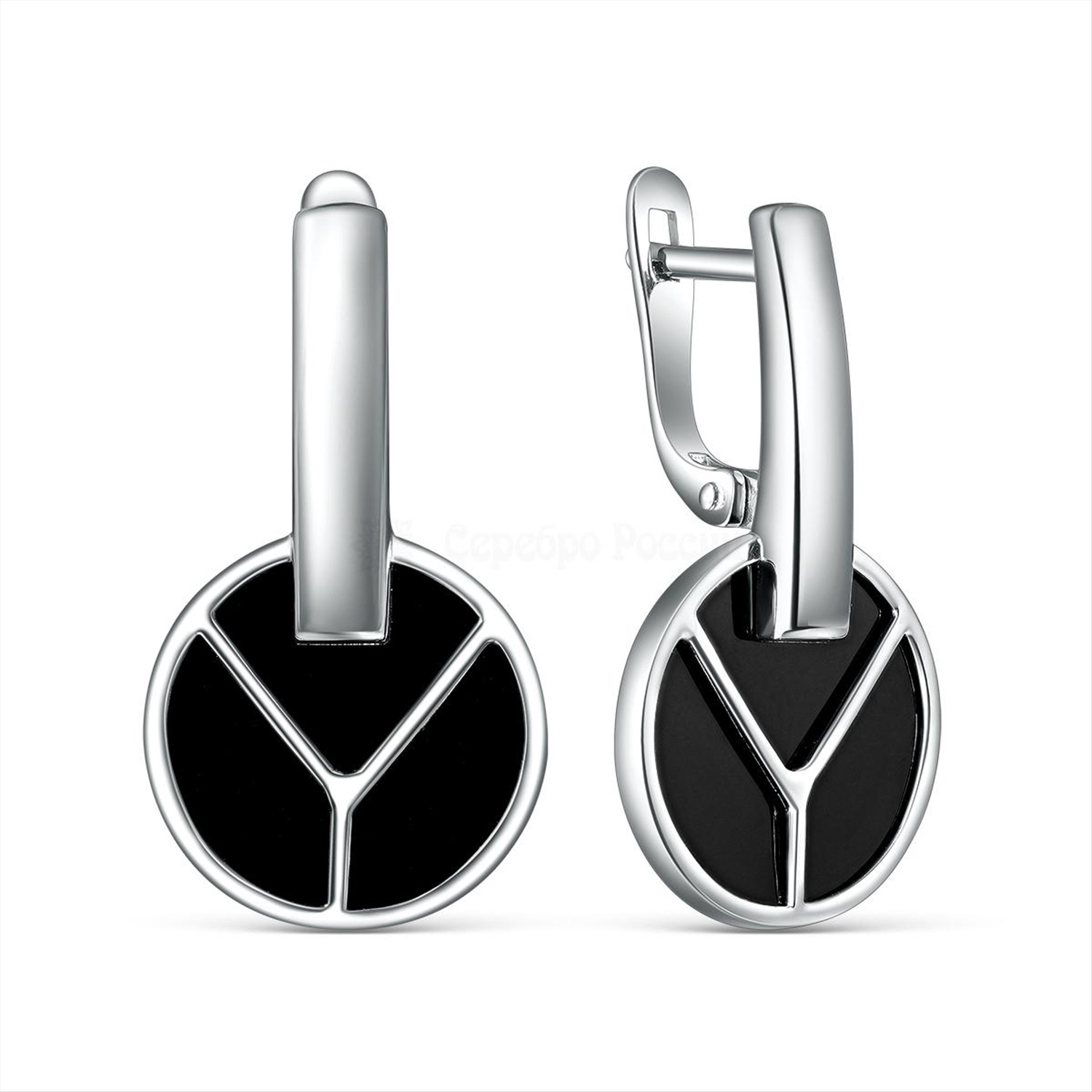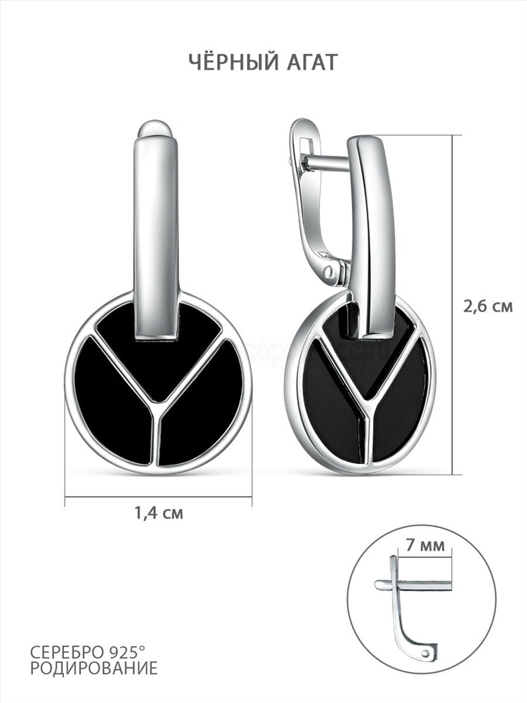 Серьги из серебра с чёрным агатом родированные С-4996-Р-Ча