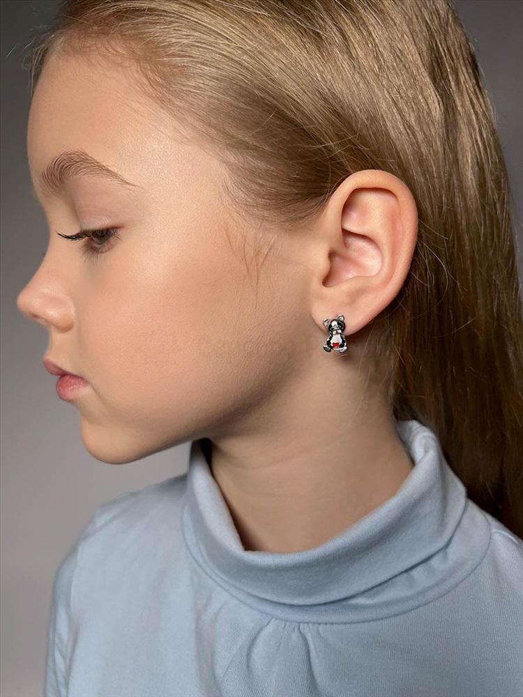 Серьги из серебра с эмалью и фианитами родированные 925 пробы 5058р