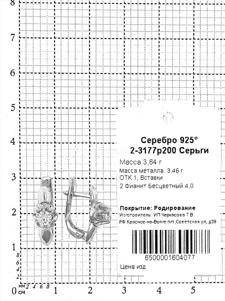 Серьги из серебра с фианитами родированные 925 пробы 2-3177р200