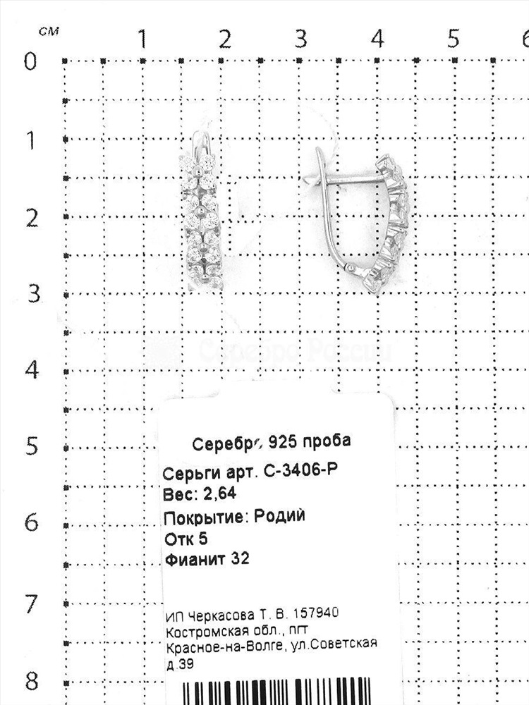 Серьги из серебра с фианитами родированные 925 пробы С-3406-Р