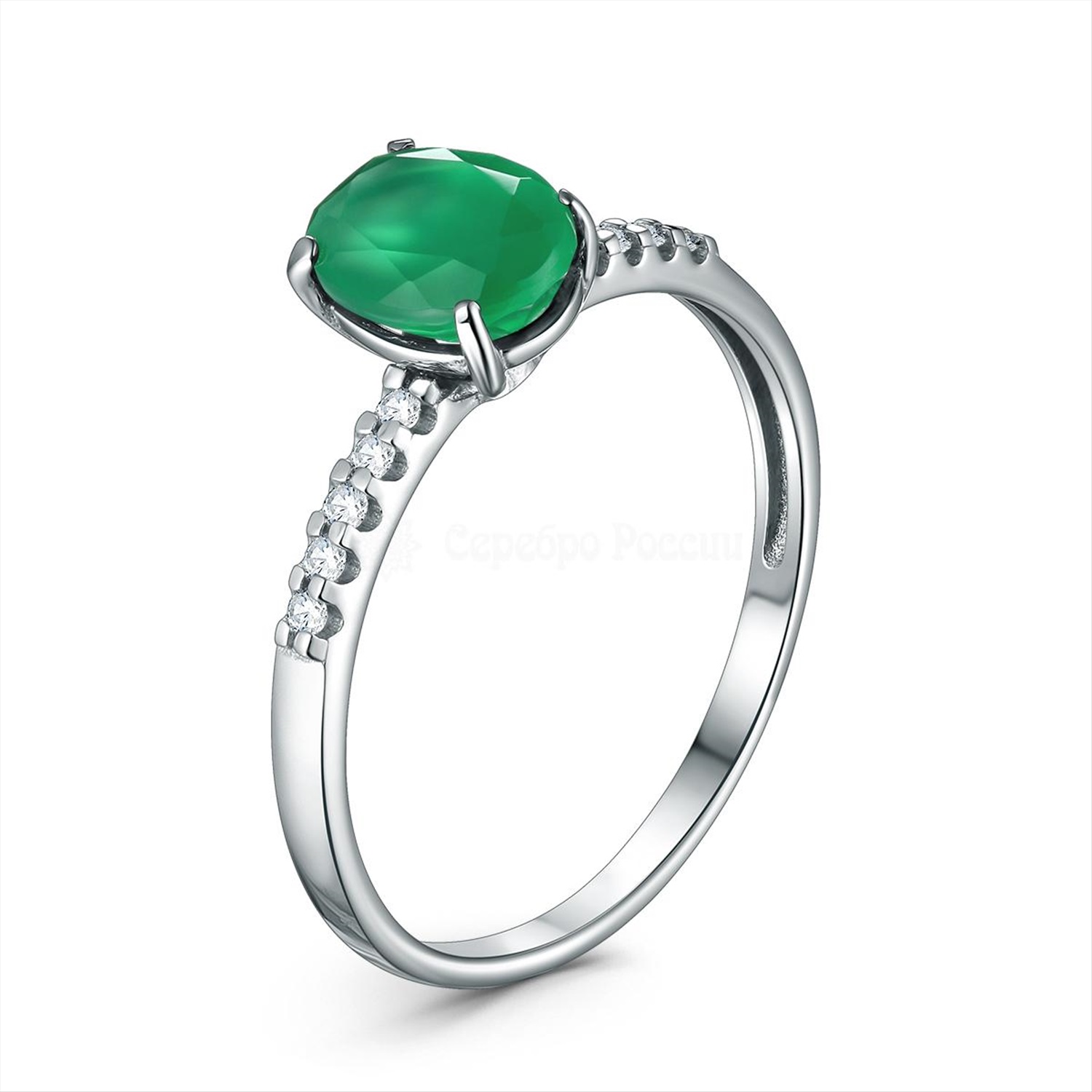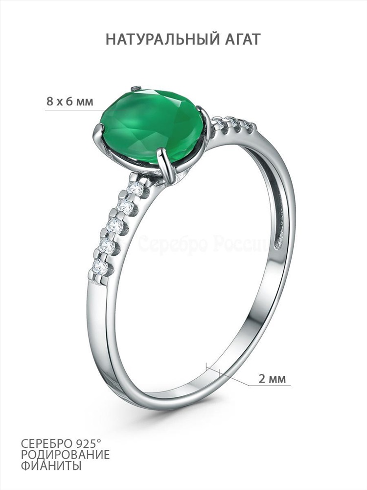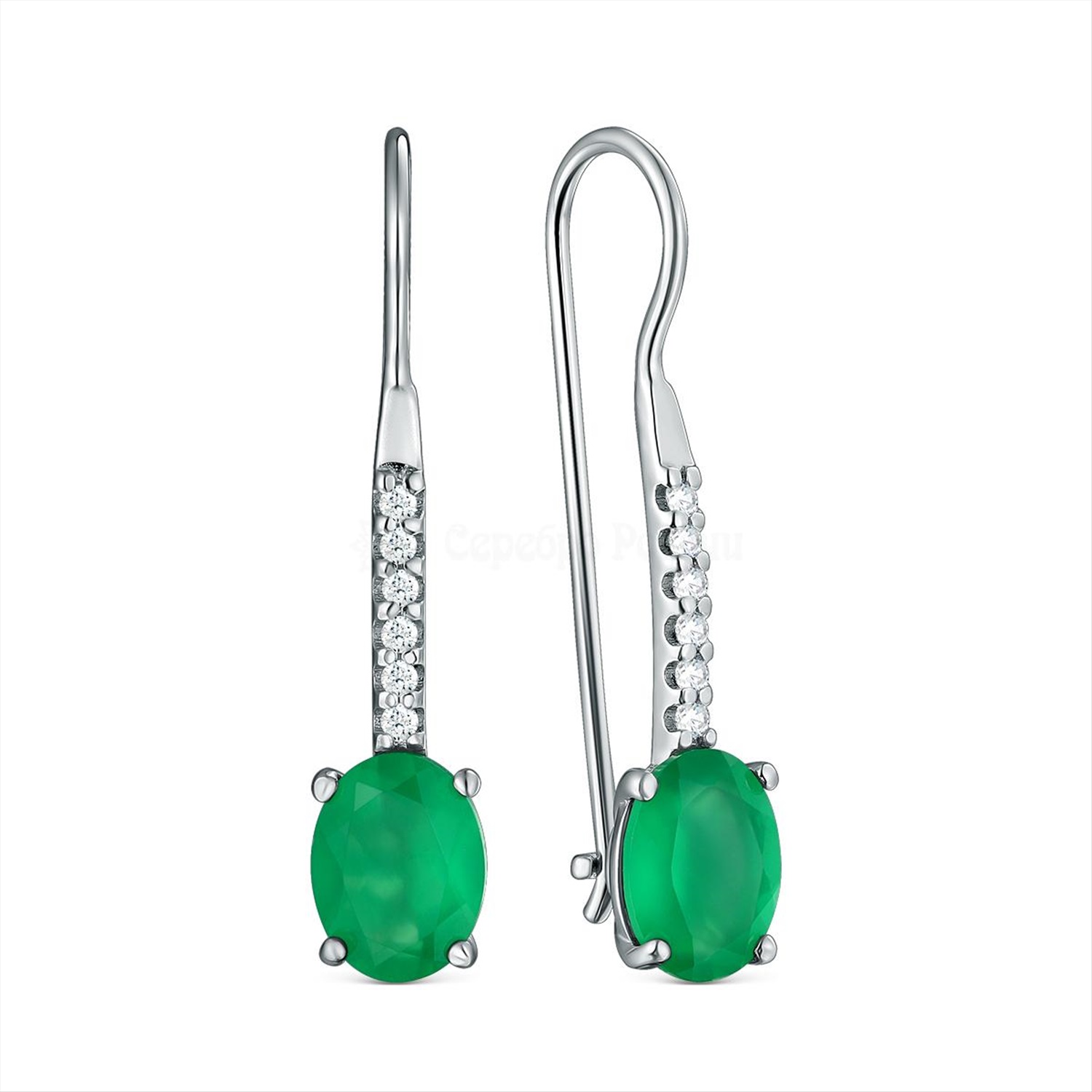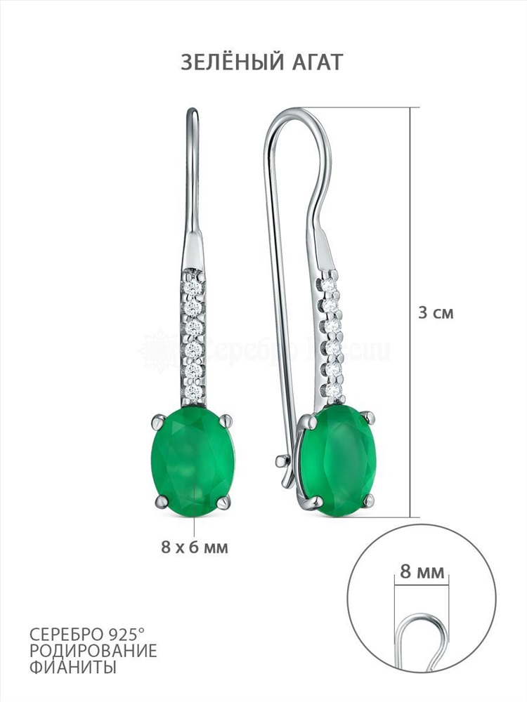 Серьги из серебра с зелёным агатом и фианитами родированные 925 пробы 2-503р40900