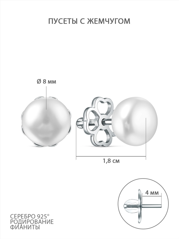 Серьги из серебра с жемчугом родированные z2-10626