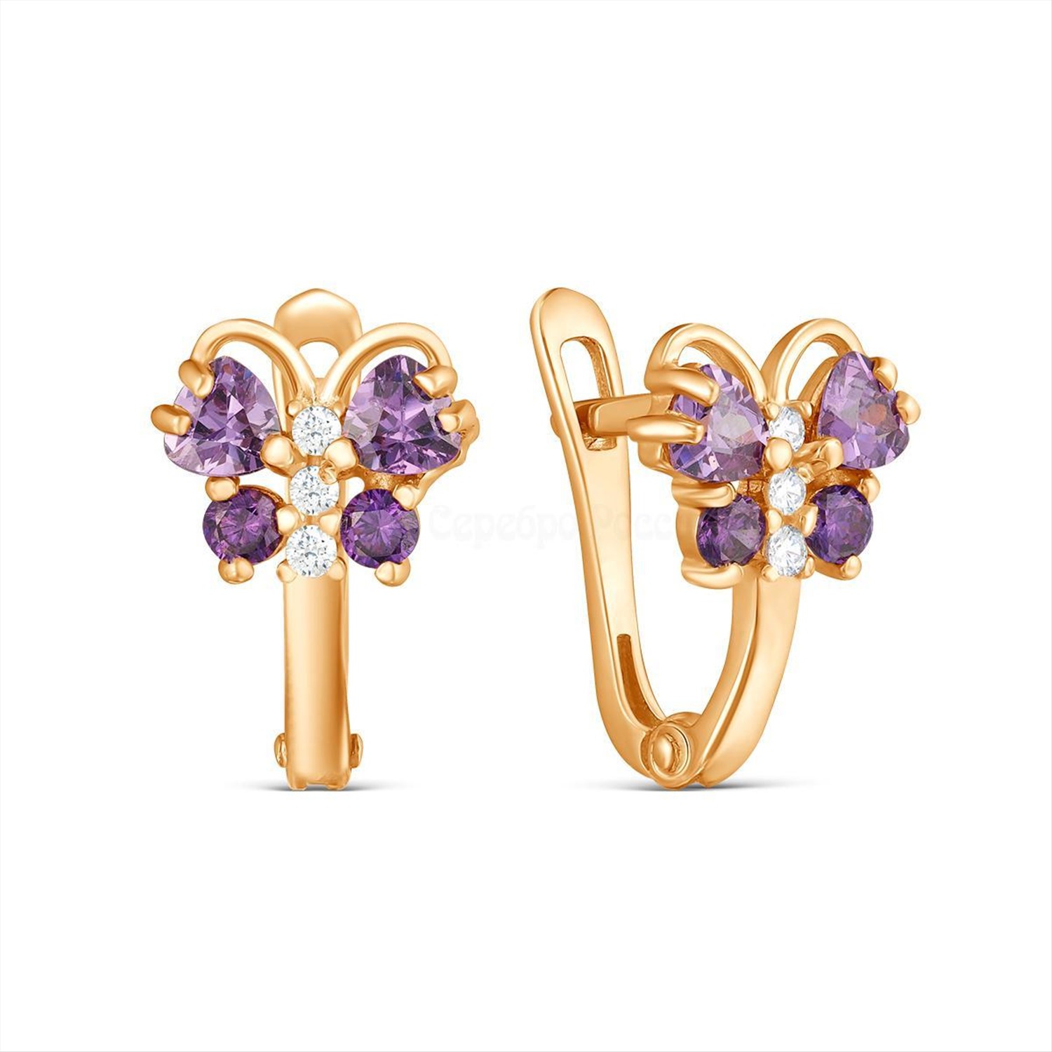 Серьги из золочёного серебра с фианитами 925 пробы 402G031-007