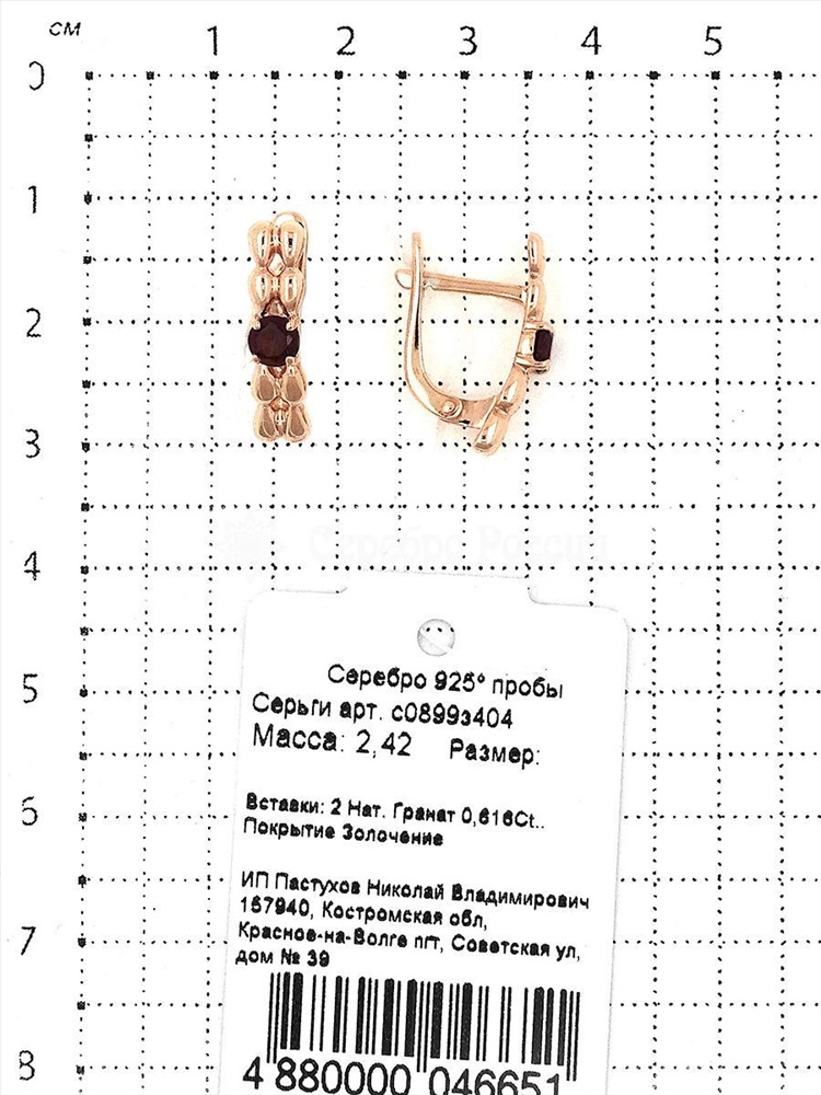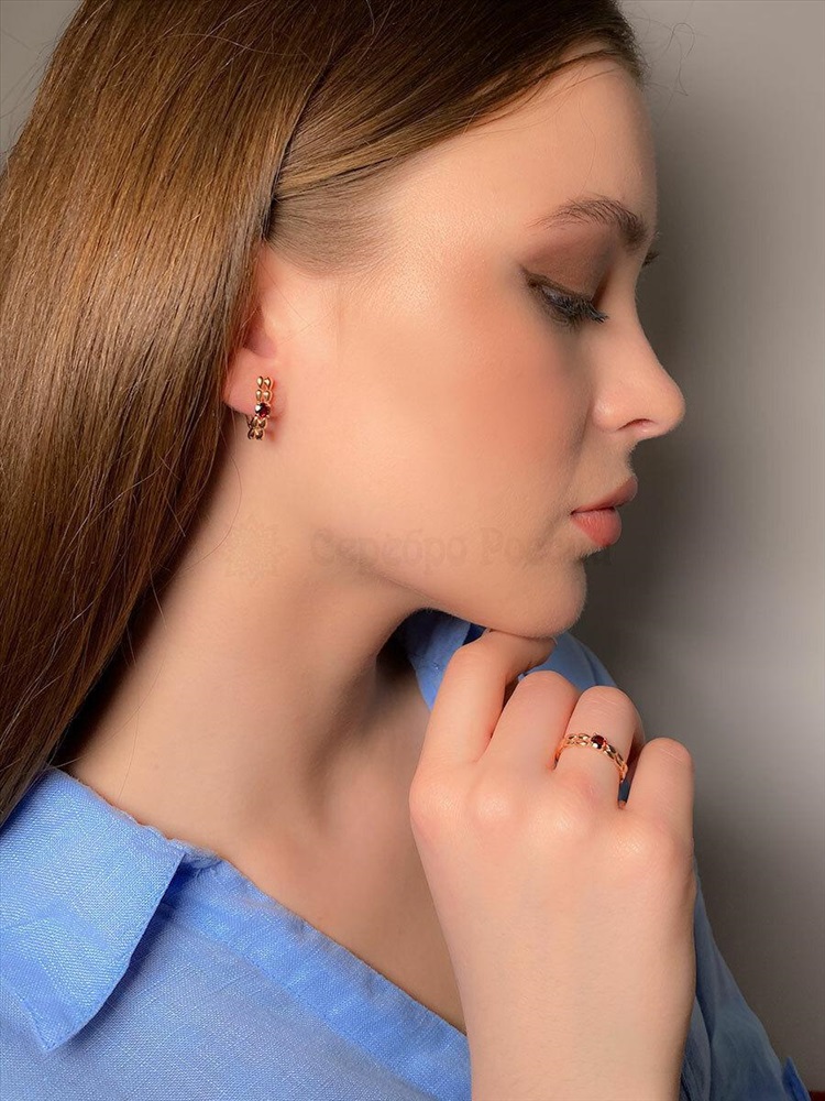 Серьги из золочёного серебра с нат.гранатом 925 пробы с0899з404