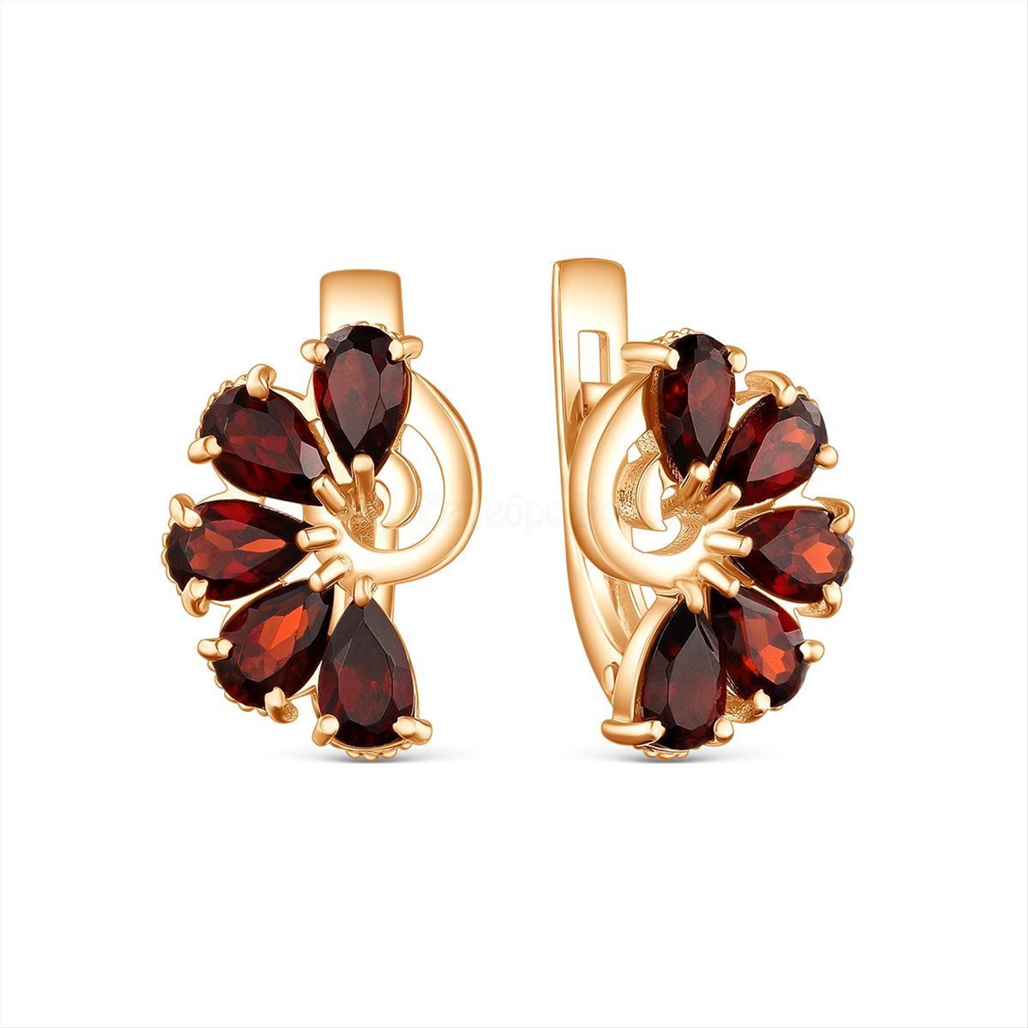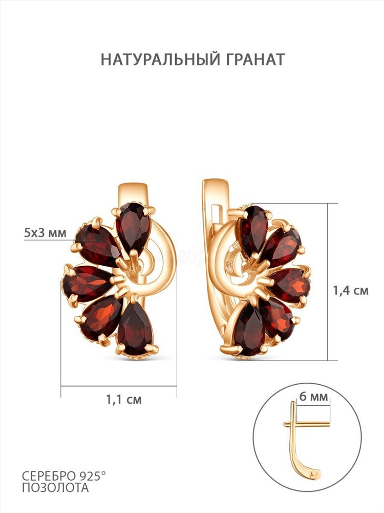 Серьги из золочёного серебра с натуральным гранатом 925 пробы 2-316з404н
