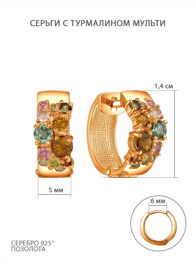 Серьги из золочёного серебра с турмалином мульти С-211з428