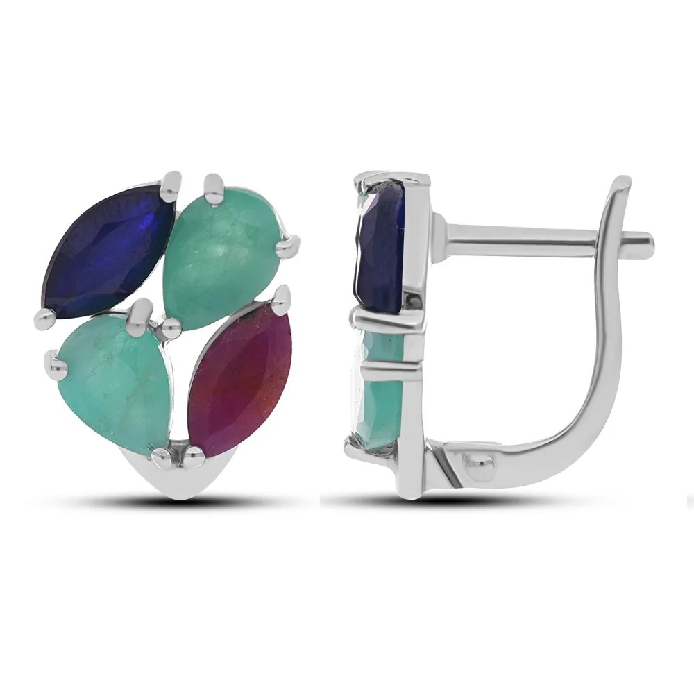 Серьги, арт.657814 Серебро Серебро 925, 4,62 гр., изумруд берилл , рубин корунд , сапфир корунд