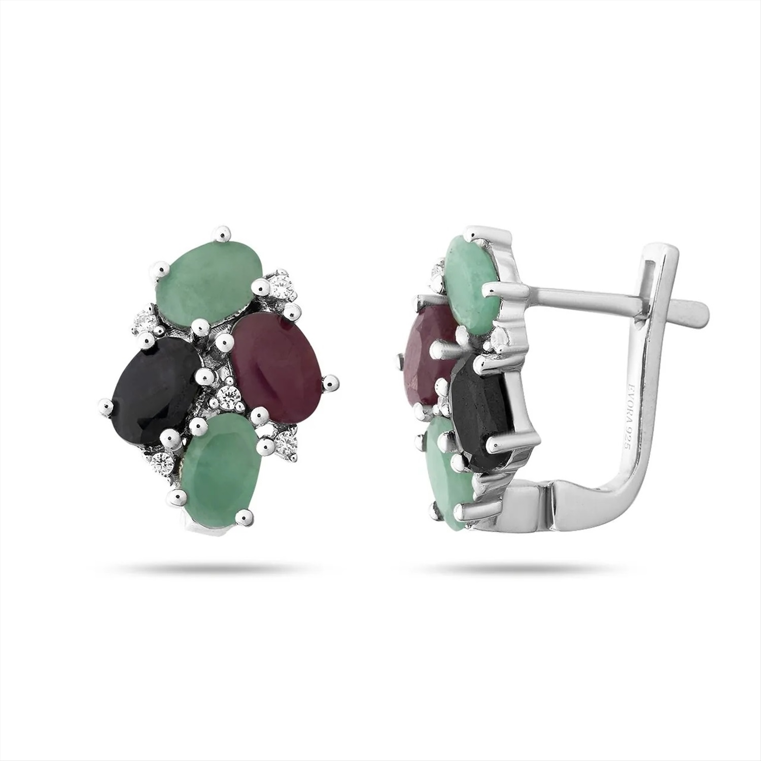 Вставка: Миксы Дизайн: Геометрия, Многокаменка Производство: Индия Покрытие: Родирование Ячейка: 1.B.15.04 Стиль: Английский замок Количество: 1 Серьги, арт.653252 Серебро Серебро 925, 4,48 гр., изумруд берилл , рубин корунд , сапфир корунд Комментарии к товару