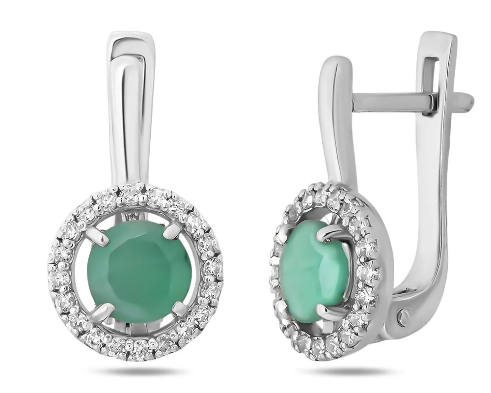 Вставка: Изумруд берилл Производство: Россия Покрытие: Родирование Ячейка: 1.A.04.03 Стиль: Английский замок Количество: 2 Серьги, арт.657443 Серебро Серебро 925, 3,58 гр., изумруд берилл Комментарии к товару