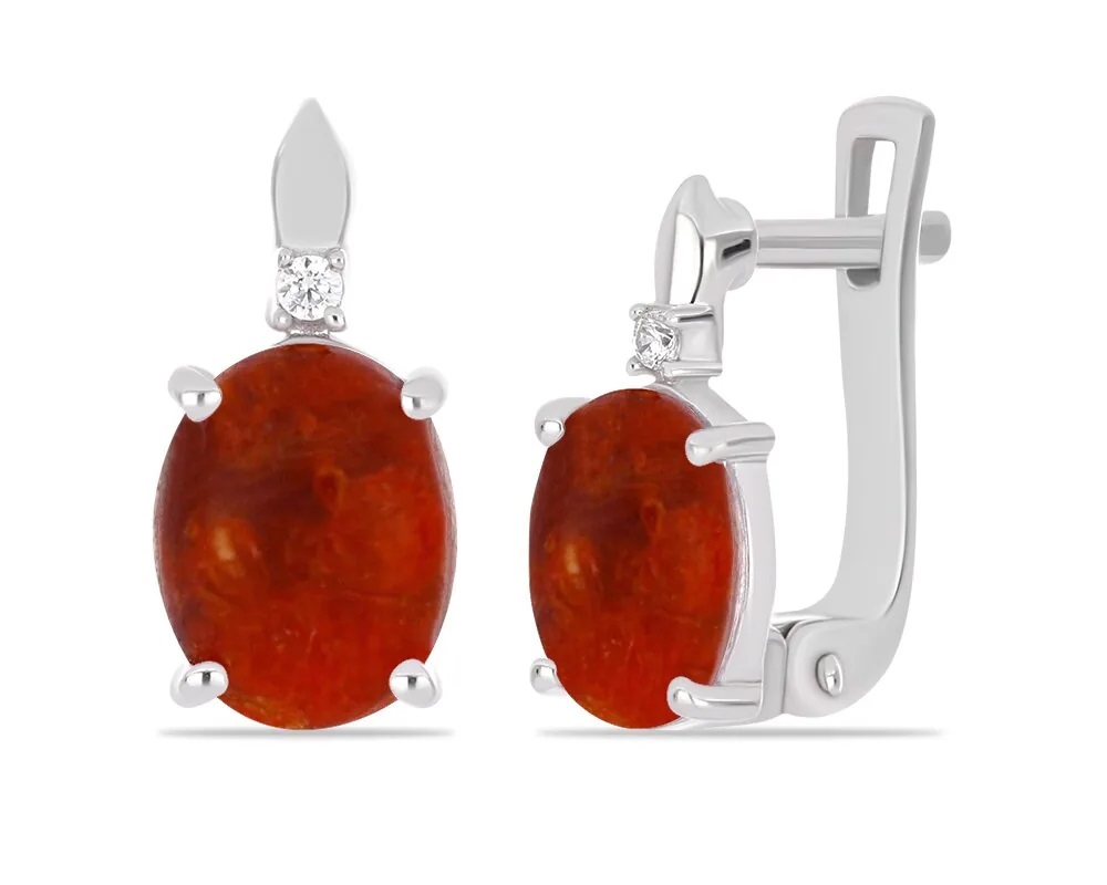 Серьги, арт.658140 Серебро Серебро 925, 3,33 гр., коралл губчатый