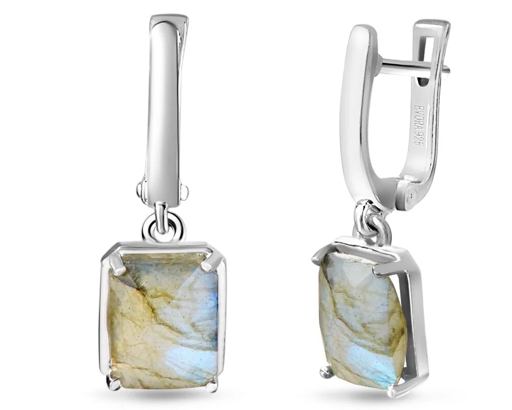 Серьги, арт.655251 Серебро Серебро 925, 4,7 гр., лабрадорит