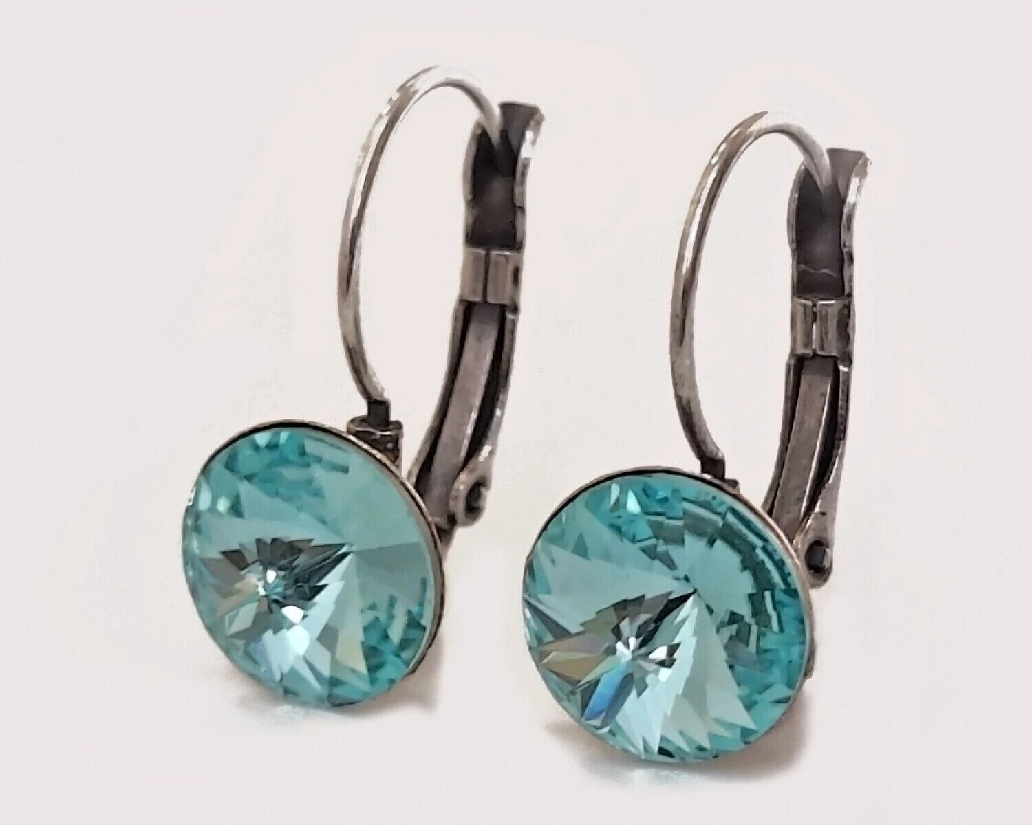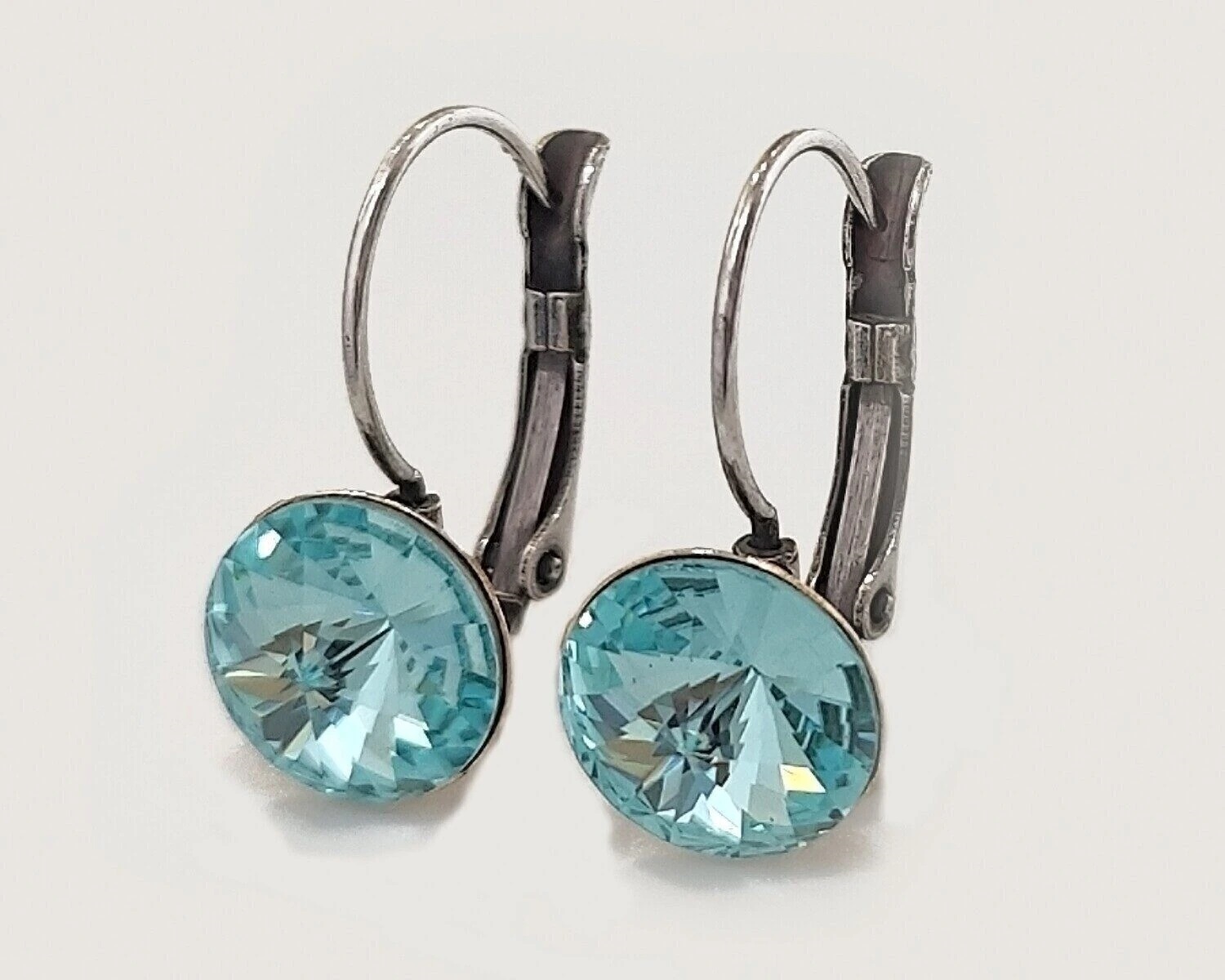 Вставка: стразы Preciosa Материал изделия: покрыто серебром 999 пробы Размер: 2 см Цвет кристалла: Aquamarine Серьги изготовлены из специального гипоаллергенного ювелирного сплава, покрыто серебром высшей 999 пробы.