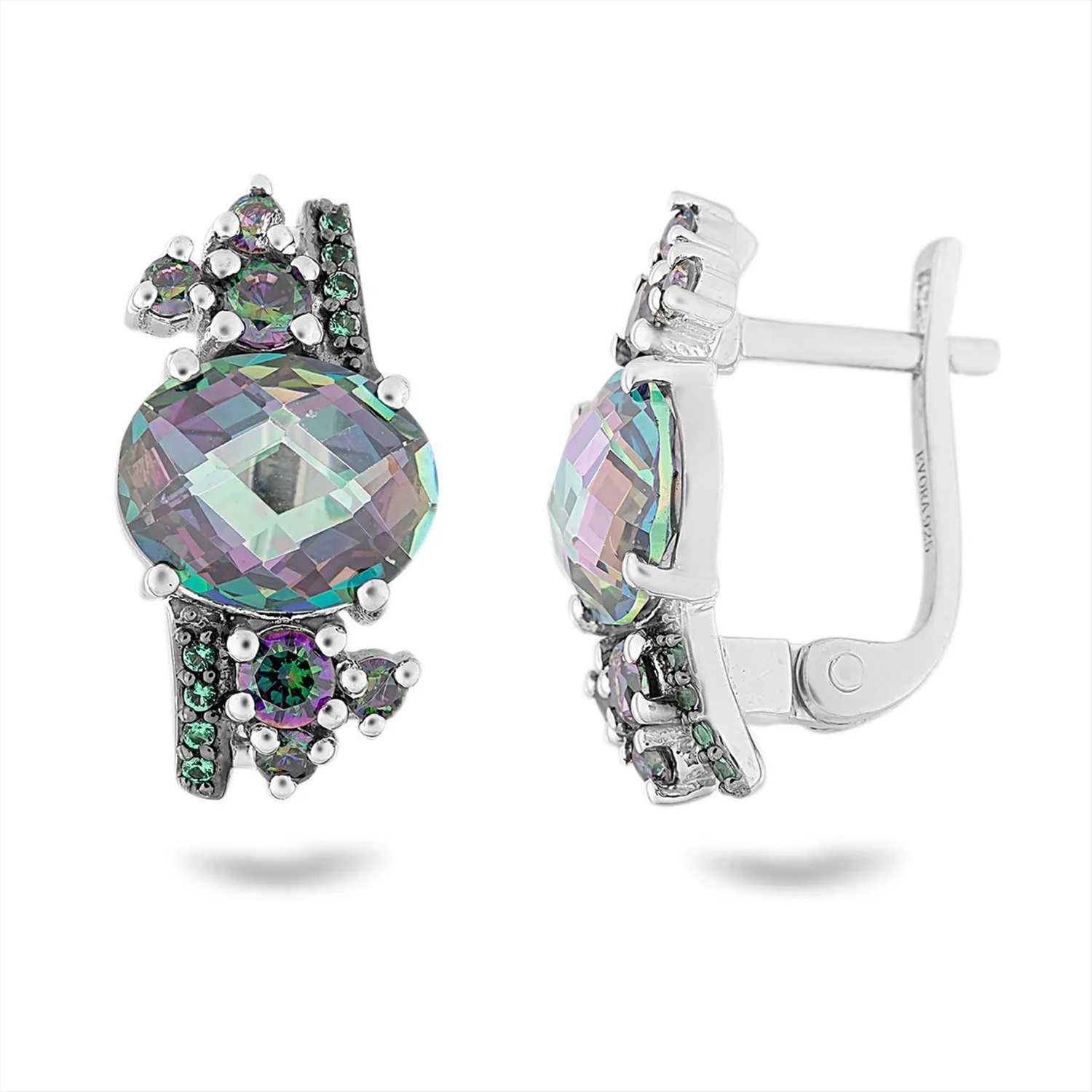 Вставка: Мистик кварц Дизайн: Многокаменка Производство: Индия Покрытие: Родирование Ячейка: 5.G.08.02 Стиль: Английский замок Количество: 1 Серьги, арт.654622 Серебро Серебро 925, 6,15 гр., мистик кварц , наноизумруд Комментарии к товару