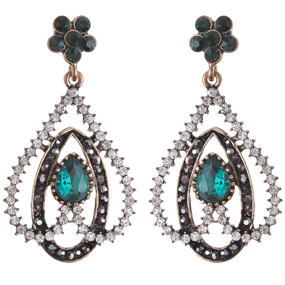 Замок: Гвоздик Тема: Вечерние украшения, Акция Цвет: Белый, Зелёный Металл: Под золото Материал: Бижутерный гипоаллергенный сплав Вставка: Стразы Производство: Китай Количество: пара Серьги на гвоздиках бело-зелёные с гальваническим покрытием под золото со стразами