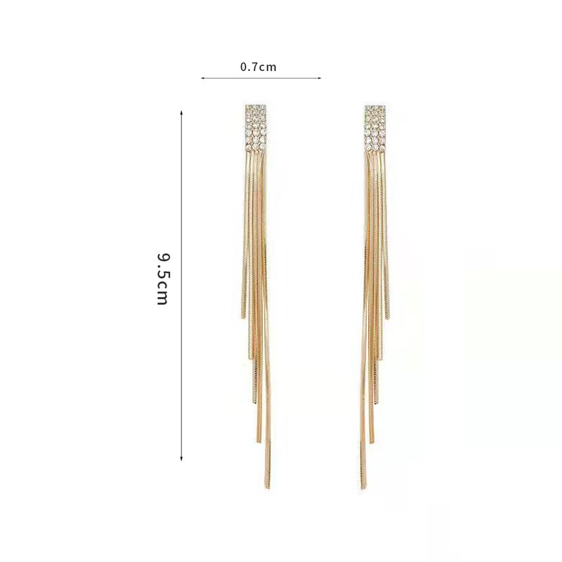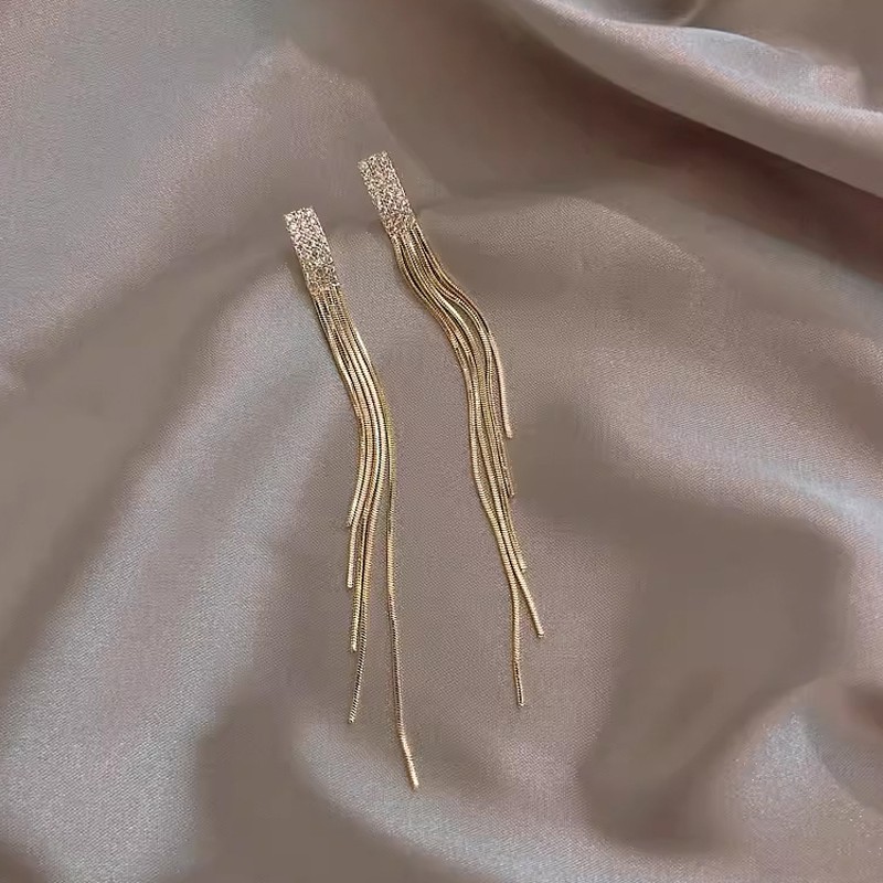 Великолепные и модные длинные висячие серьги со свисающими кисточками-цепочками прекрасно подходят практически к любым нарядам: и к платьям с открытыми плечами, и к классической чёрной водолазке.