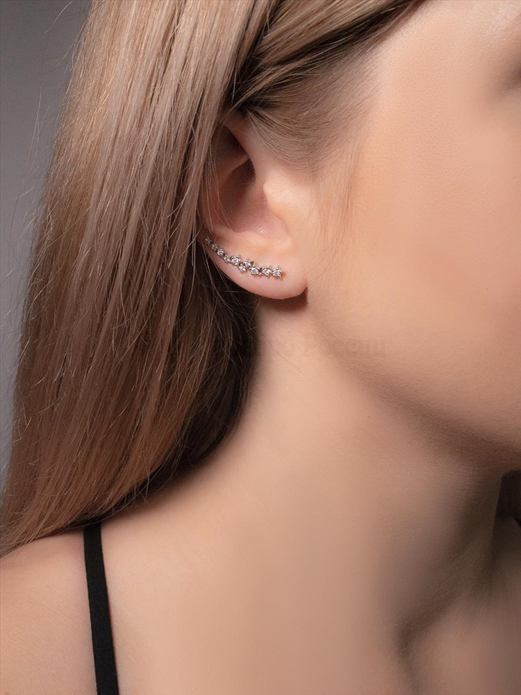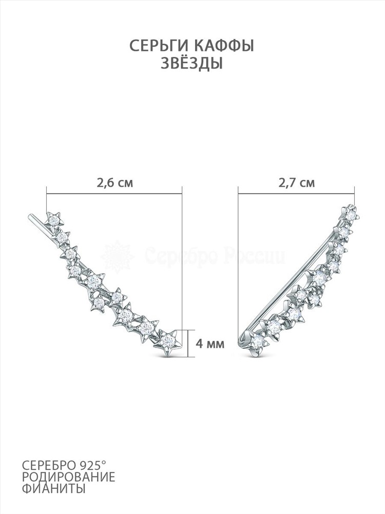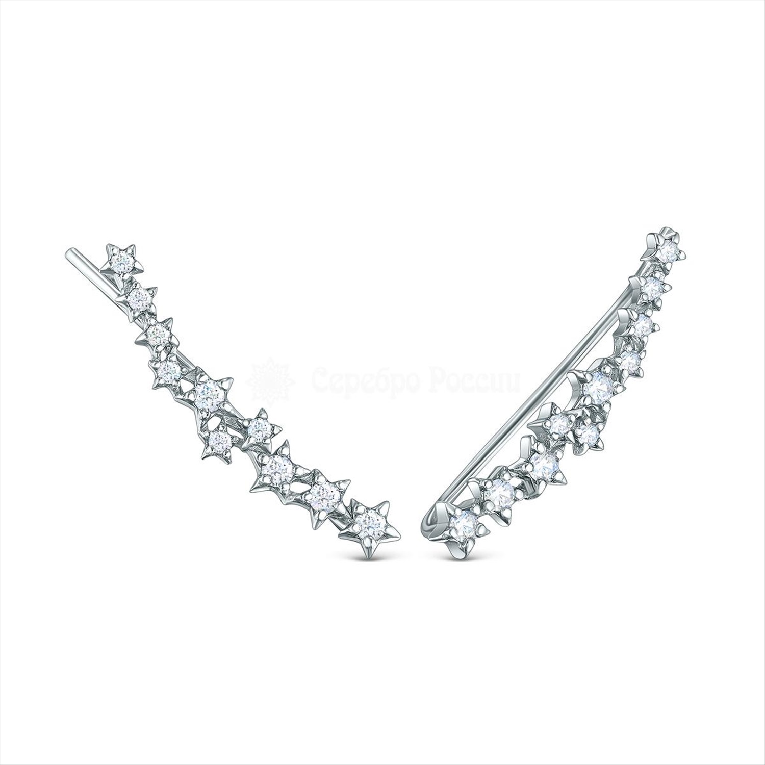 Серьги-продёвки из серебра с фианитами родированные 925 пробы 21135р200