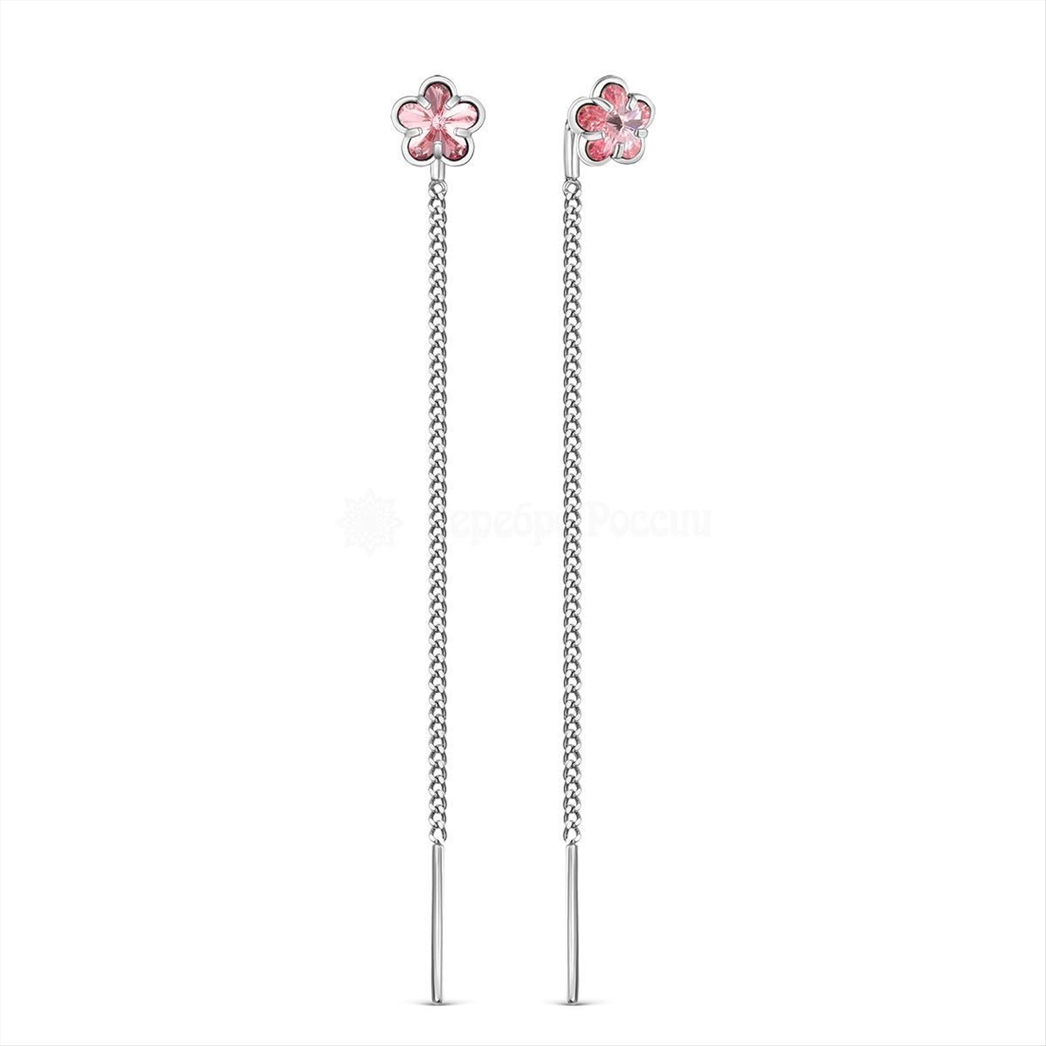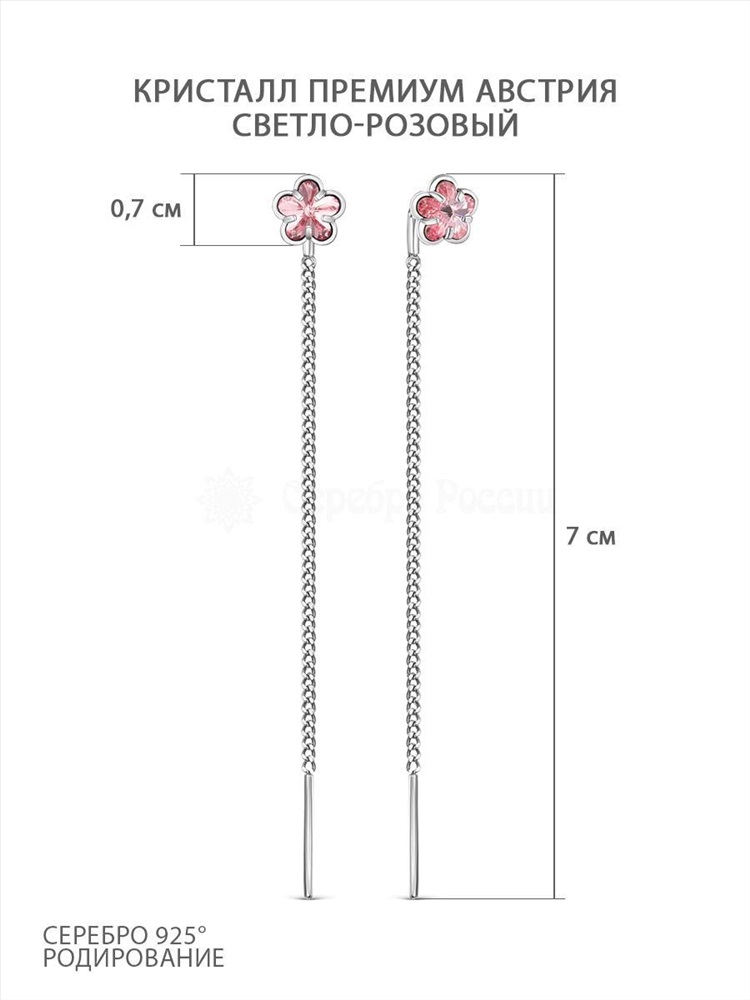 Серьги-продёвки из серебра с кристаллами премиум Австрия Светло-розовый 925 пробы с-2002-1-223
