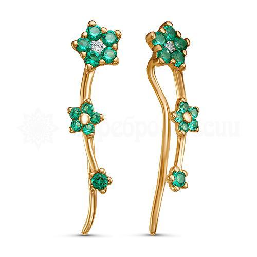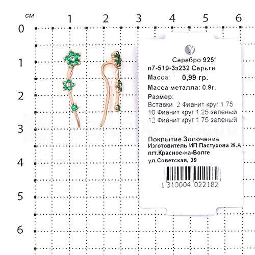 Серьги-продёвки из золочёного серебра с фианитами 925 пробы п7-519-3з232