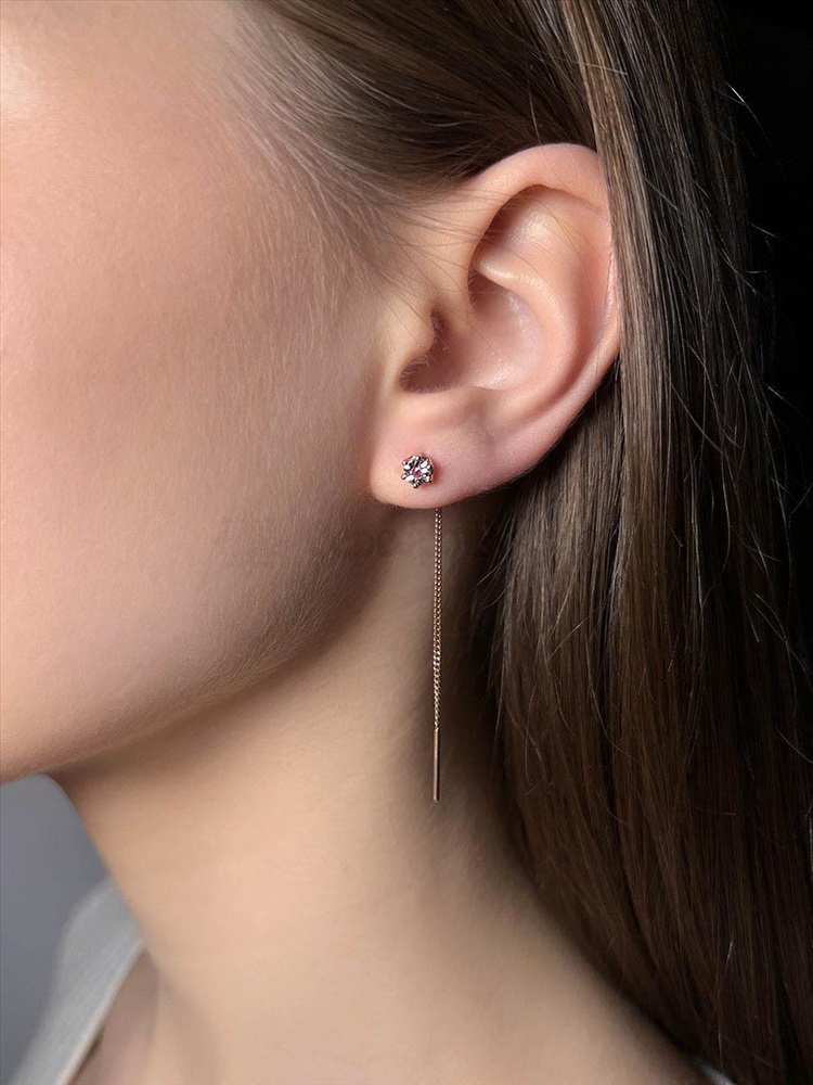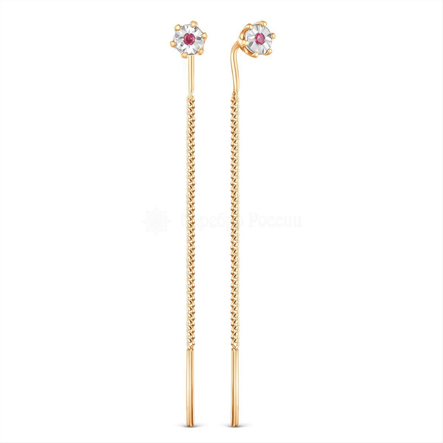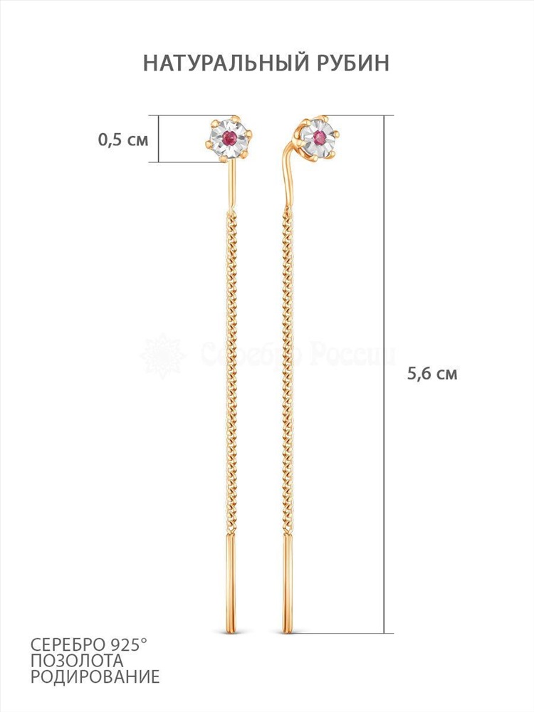 Серьги-продёвки из золочёного серебра с нат. рубином и родированием 925 пробы п7-586з415