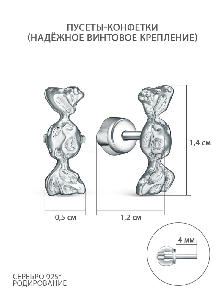 Серьги-пусеты из серебра родированные - Конфетки 2-038р