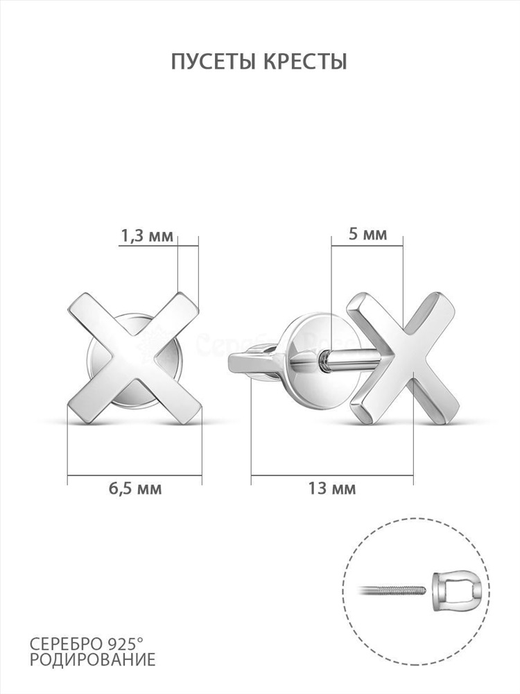 Серьги-пусеты из серебра родированные 925 пробы 25045р