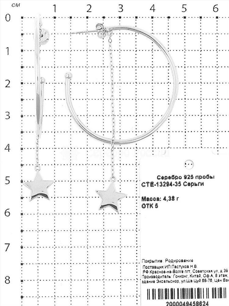 Серьги-пусеты из серебра родированные 925 пробы CTE-13294-35