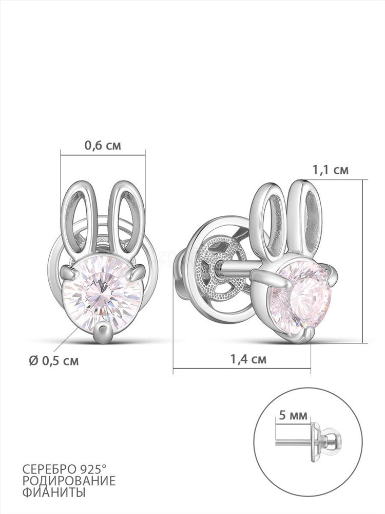 Серьги-пусеты из серебра с фианитами родированные - Зайцы 925 пробы С-4009рс2D71