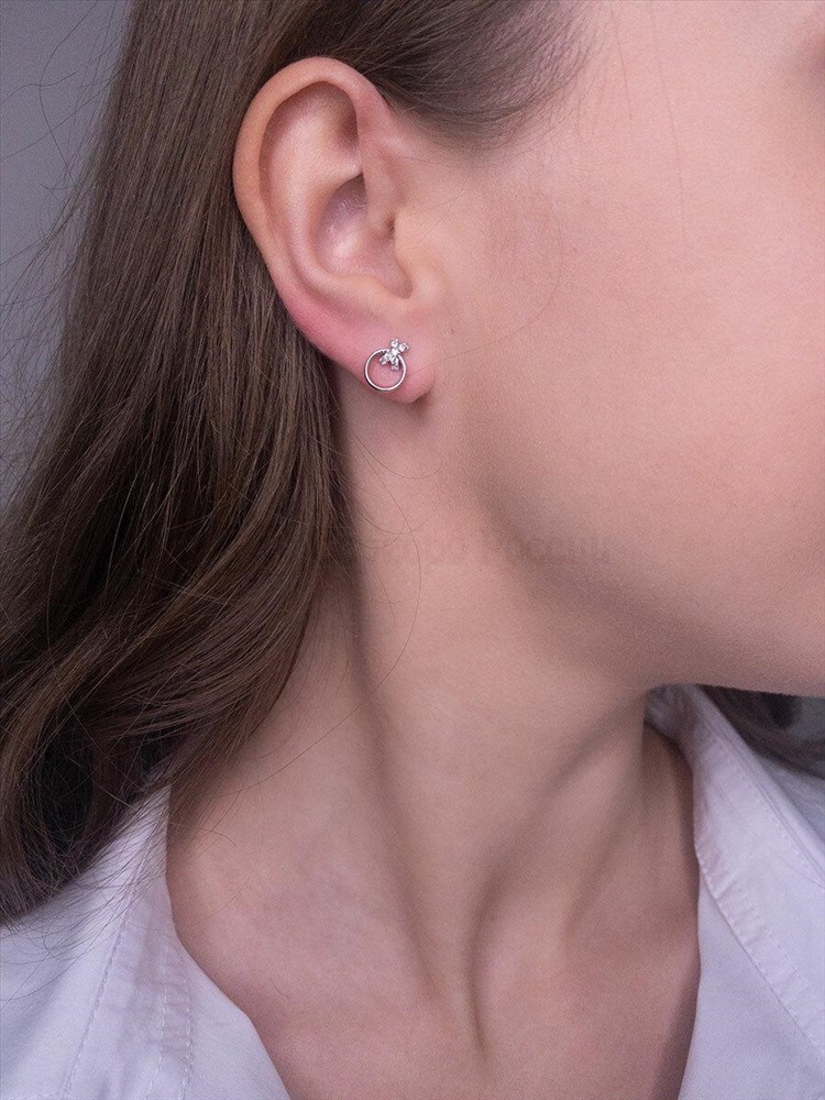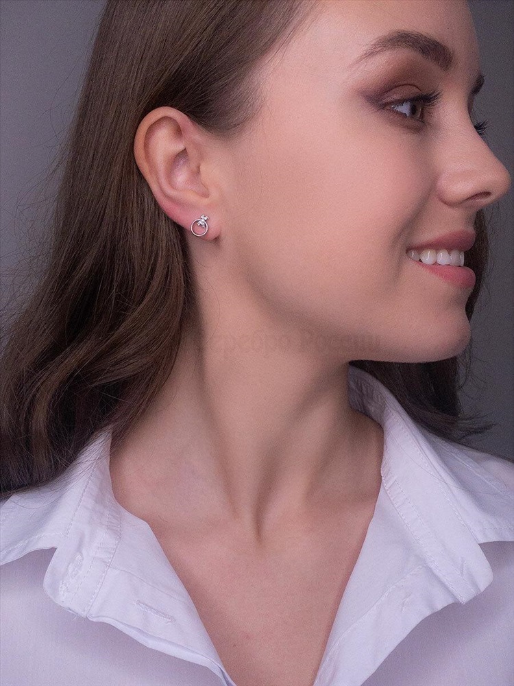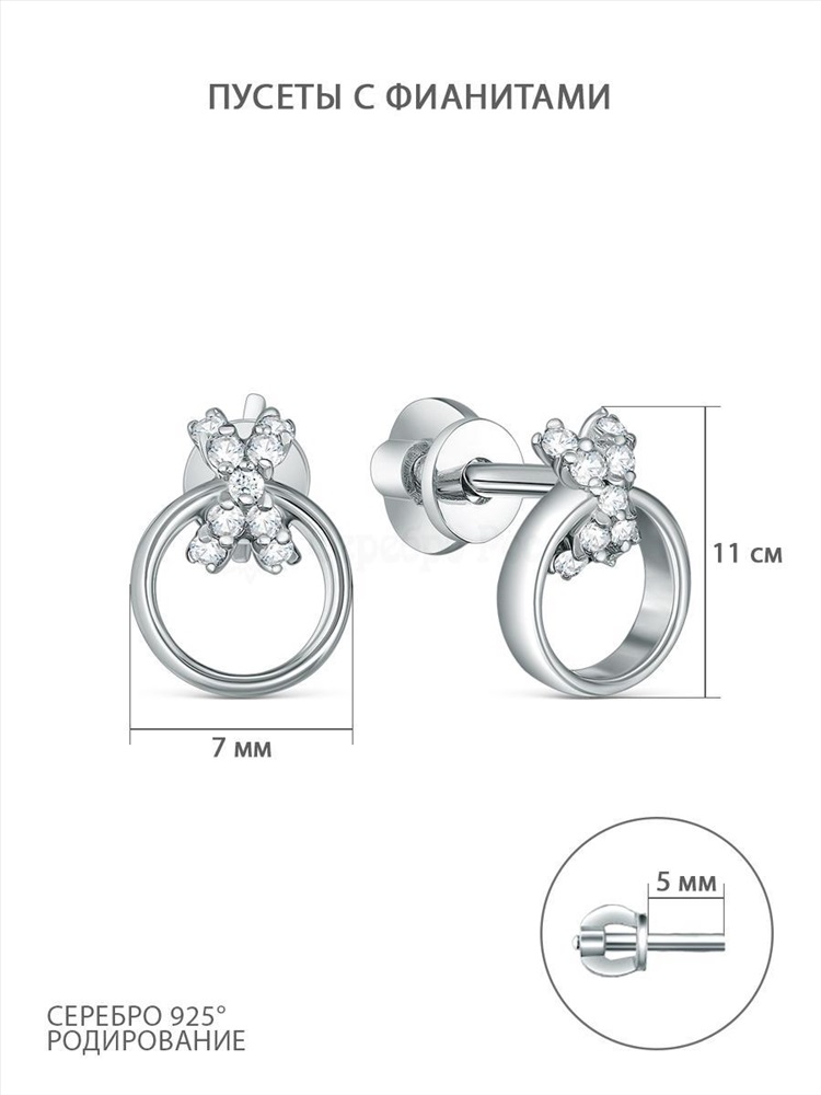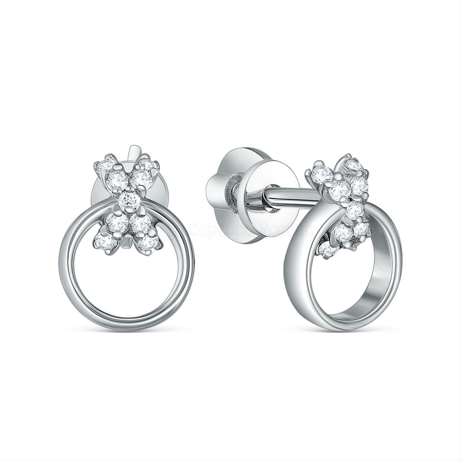 Серьги-пусеты из серебра с фианитами родированные 925 пробы с-0007р200