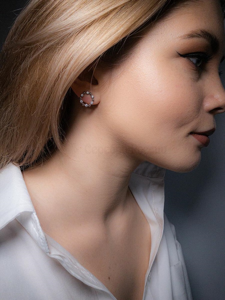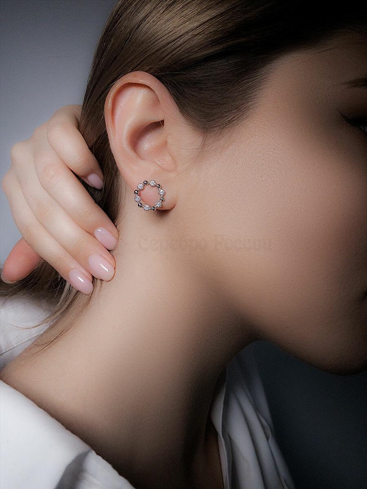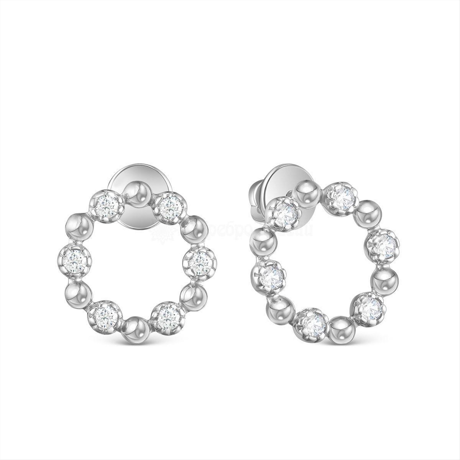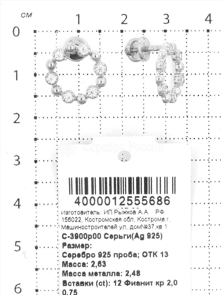 Серьги-пусеты из серебра с фианитами родированные 925 пробы С-3900р00
