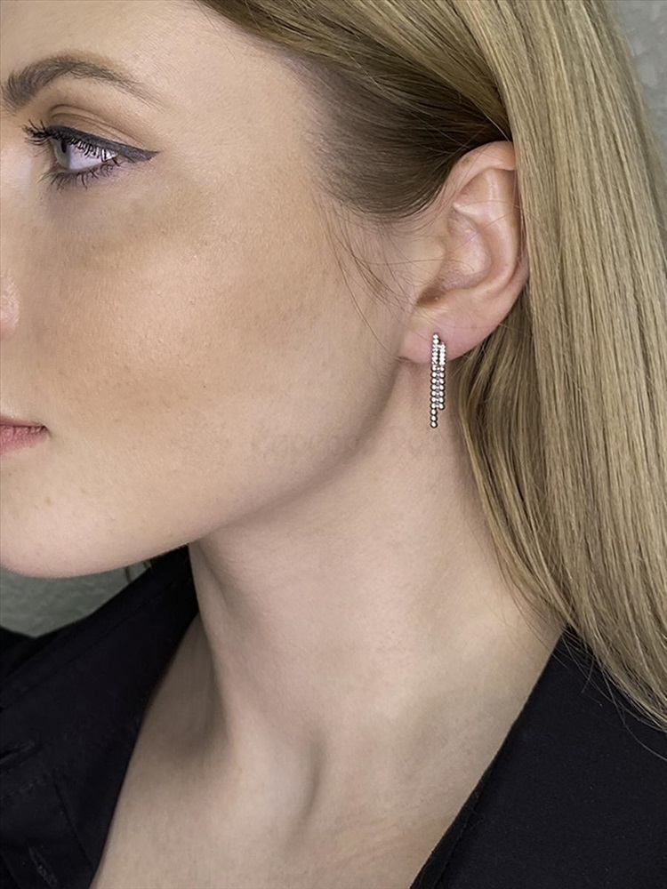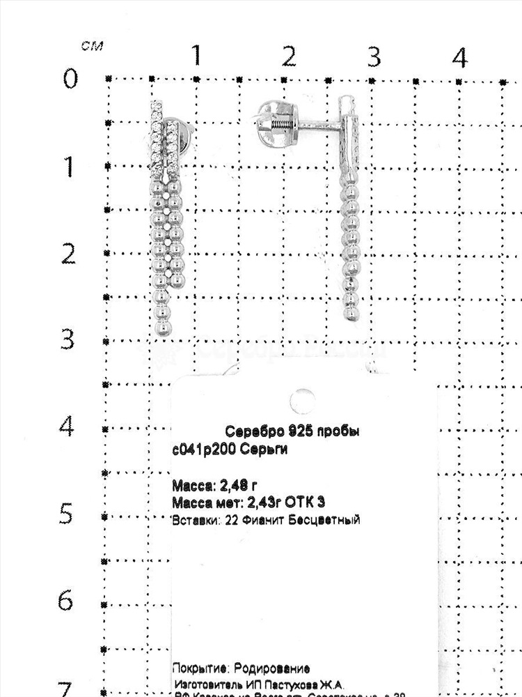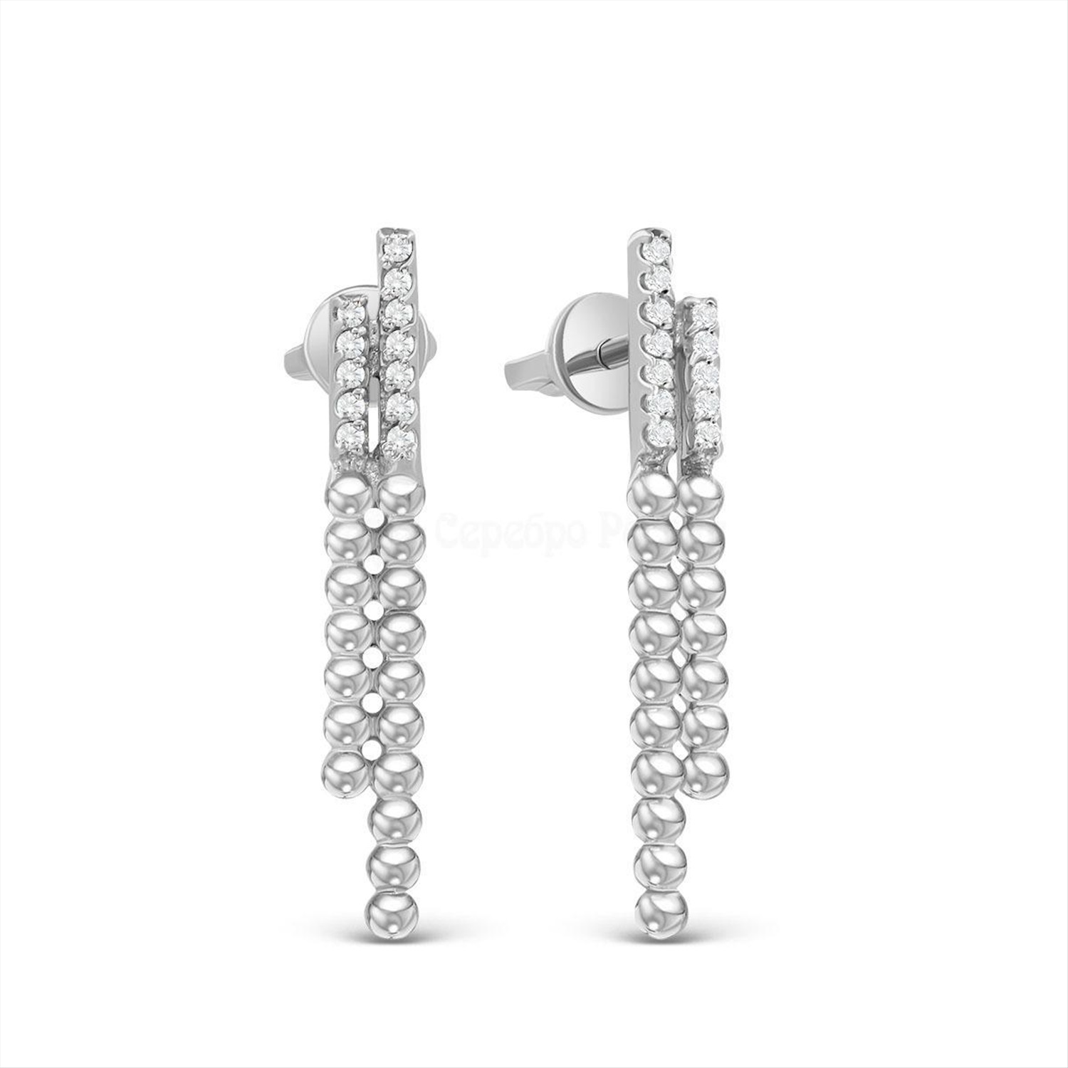Серьги-пусеты из серебра с фианитами родированные 925 пробы с041р200